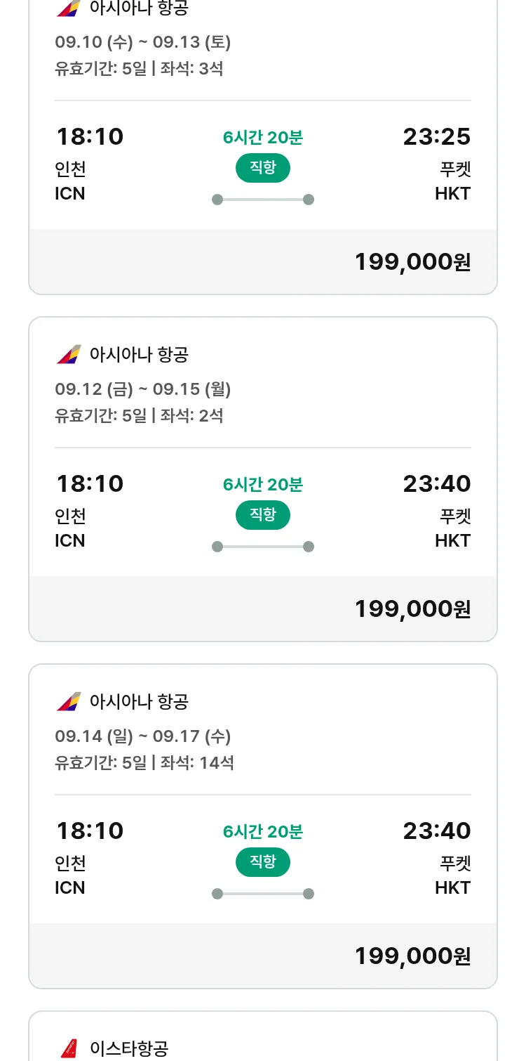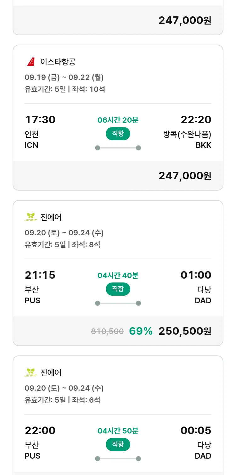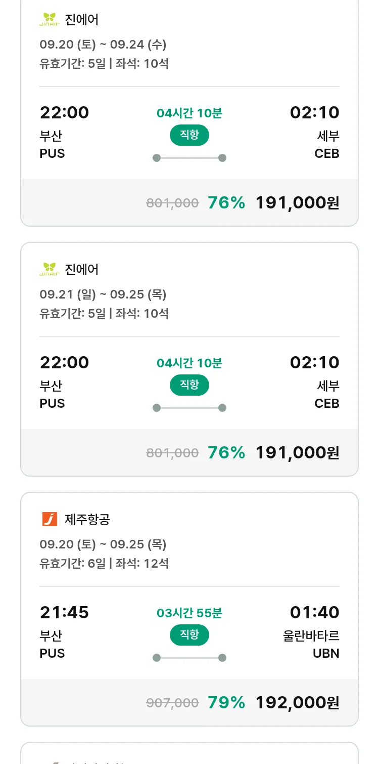 (9월5일(금)) 땡처리 특가 항공권