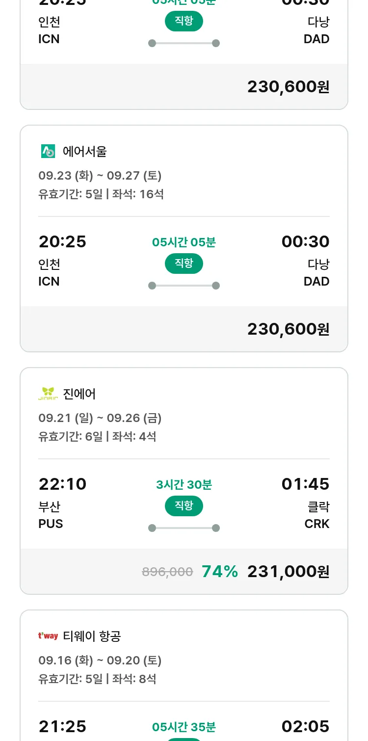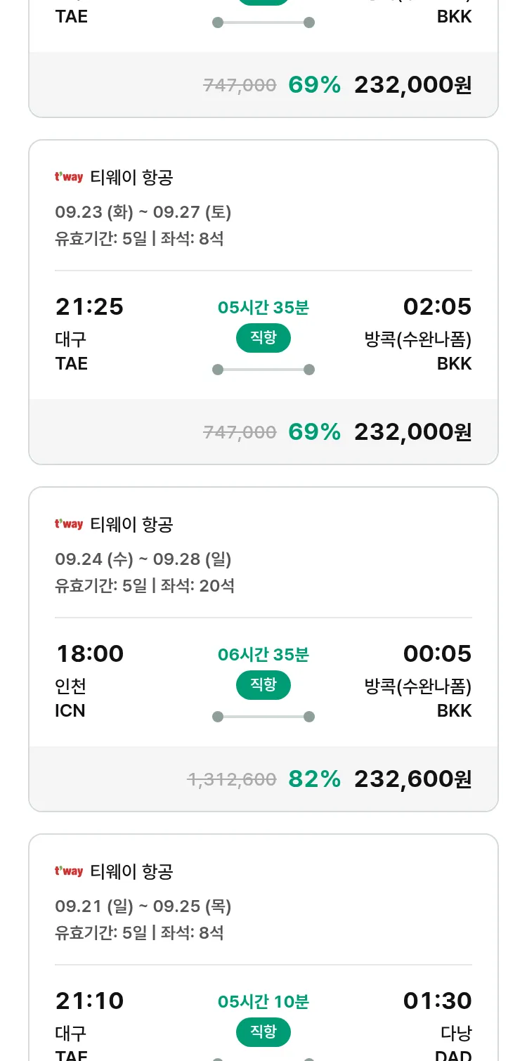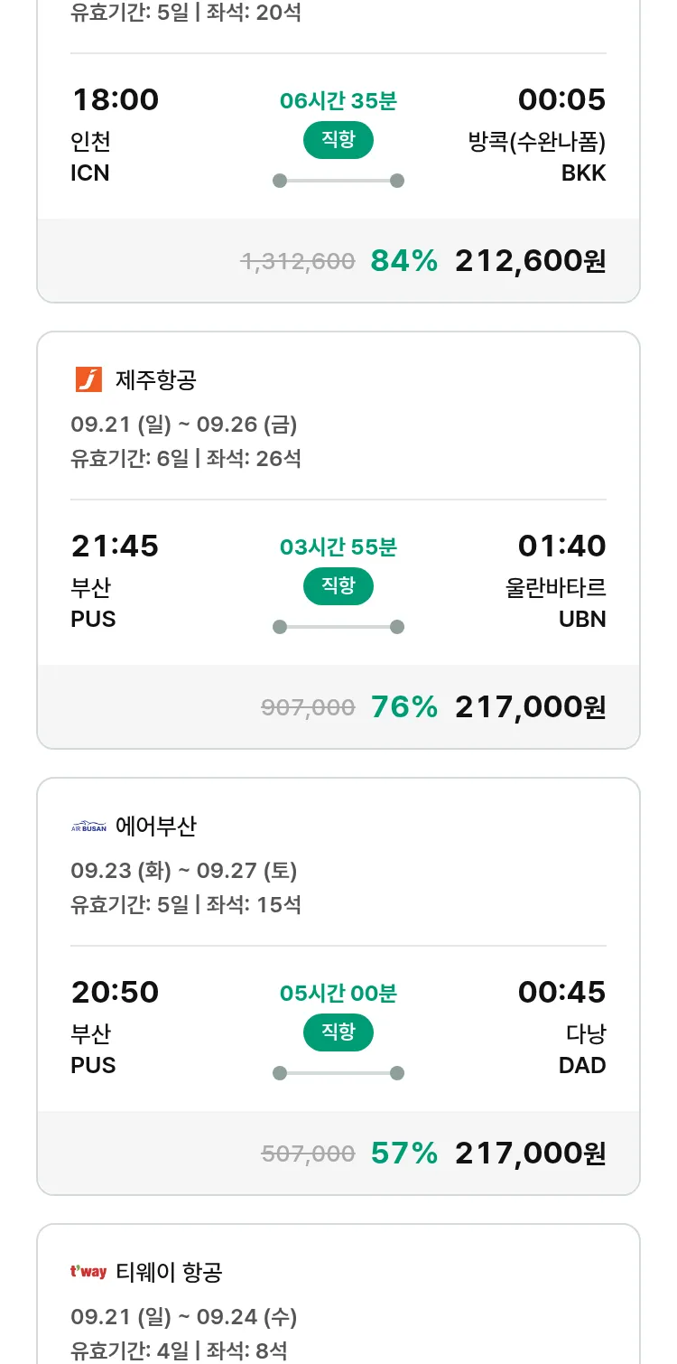 (9월6일(토)) 땡처리 특가 항공권