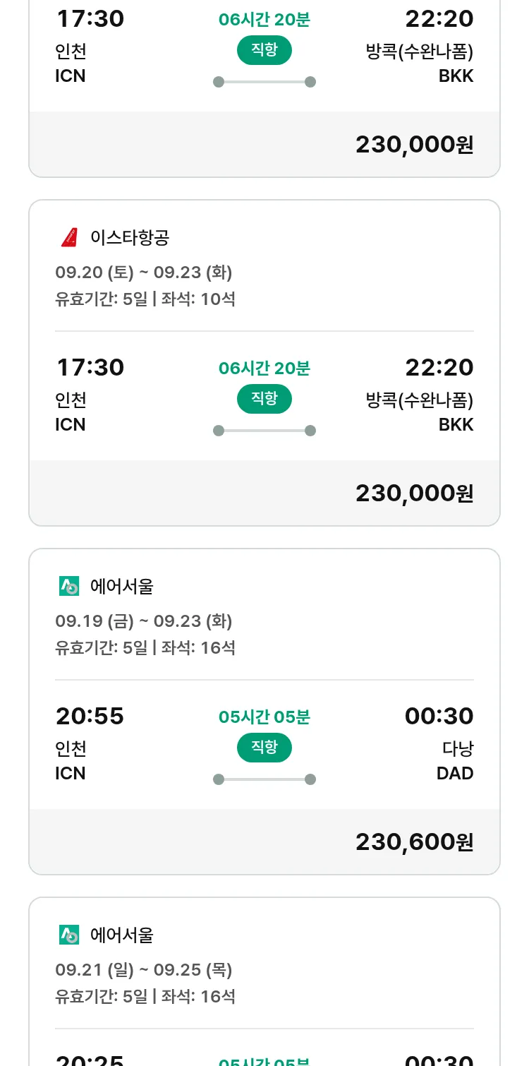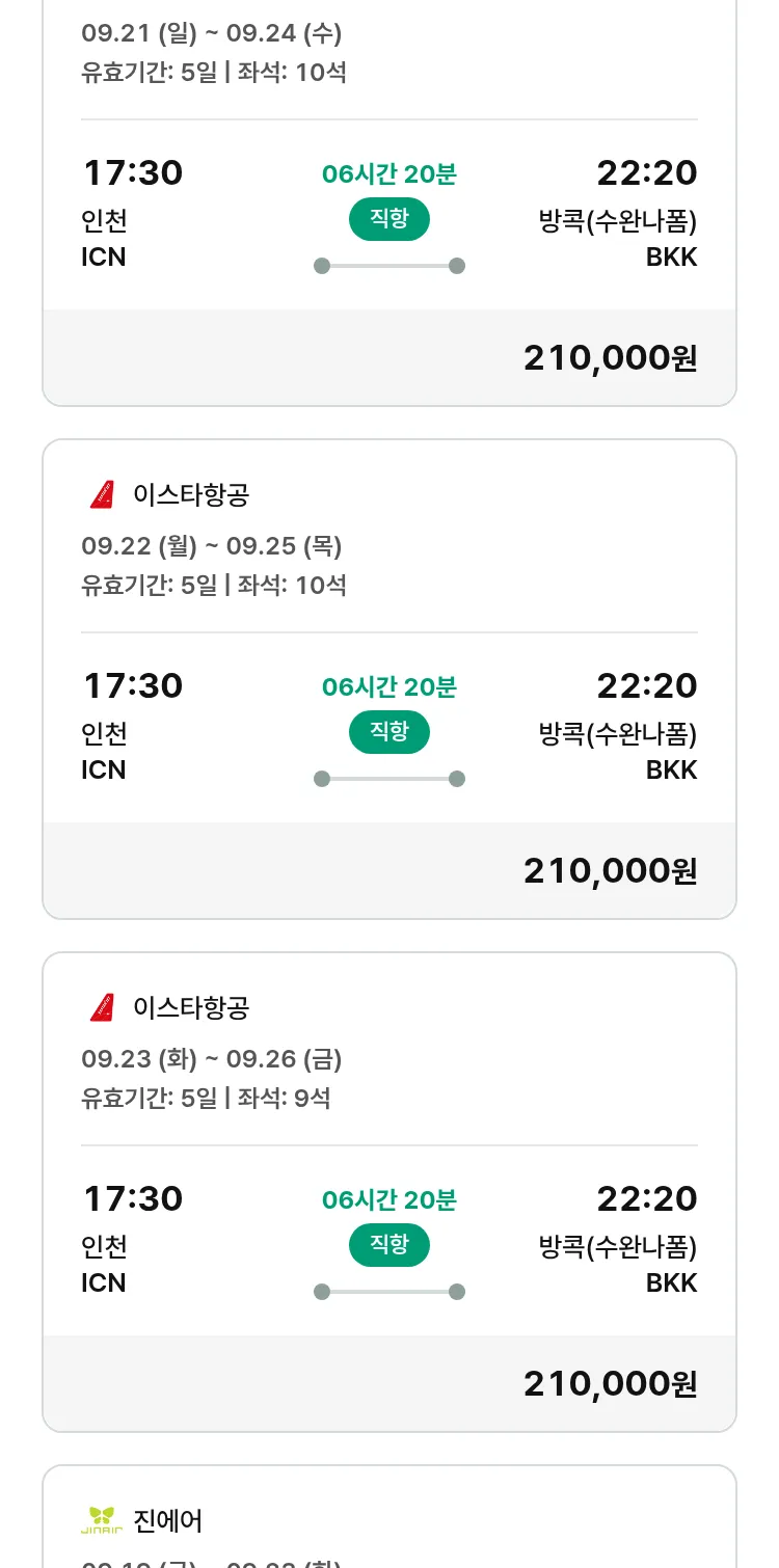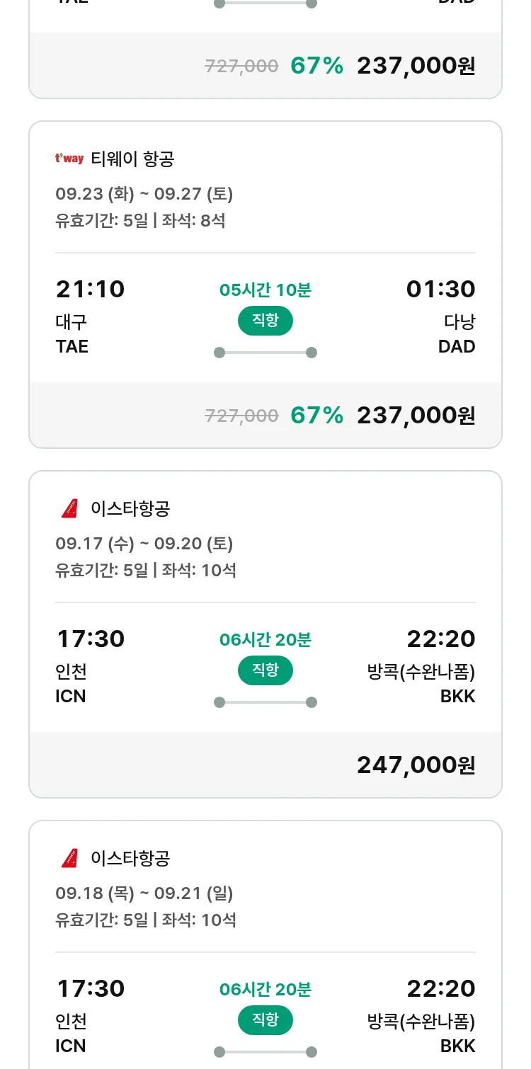 (9월6일(토)) 땡처리 특가 항공권