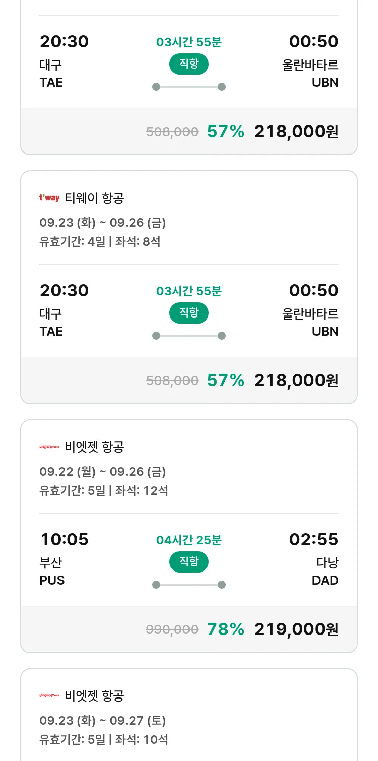 (9월4일(목)) 땡처리 특가 항공권