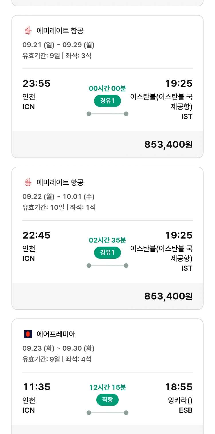 (9월6일(토)) 땡처리 특가 항공권