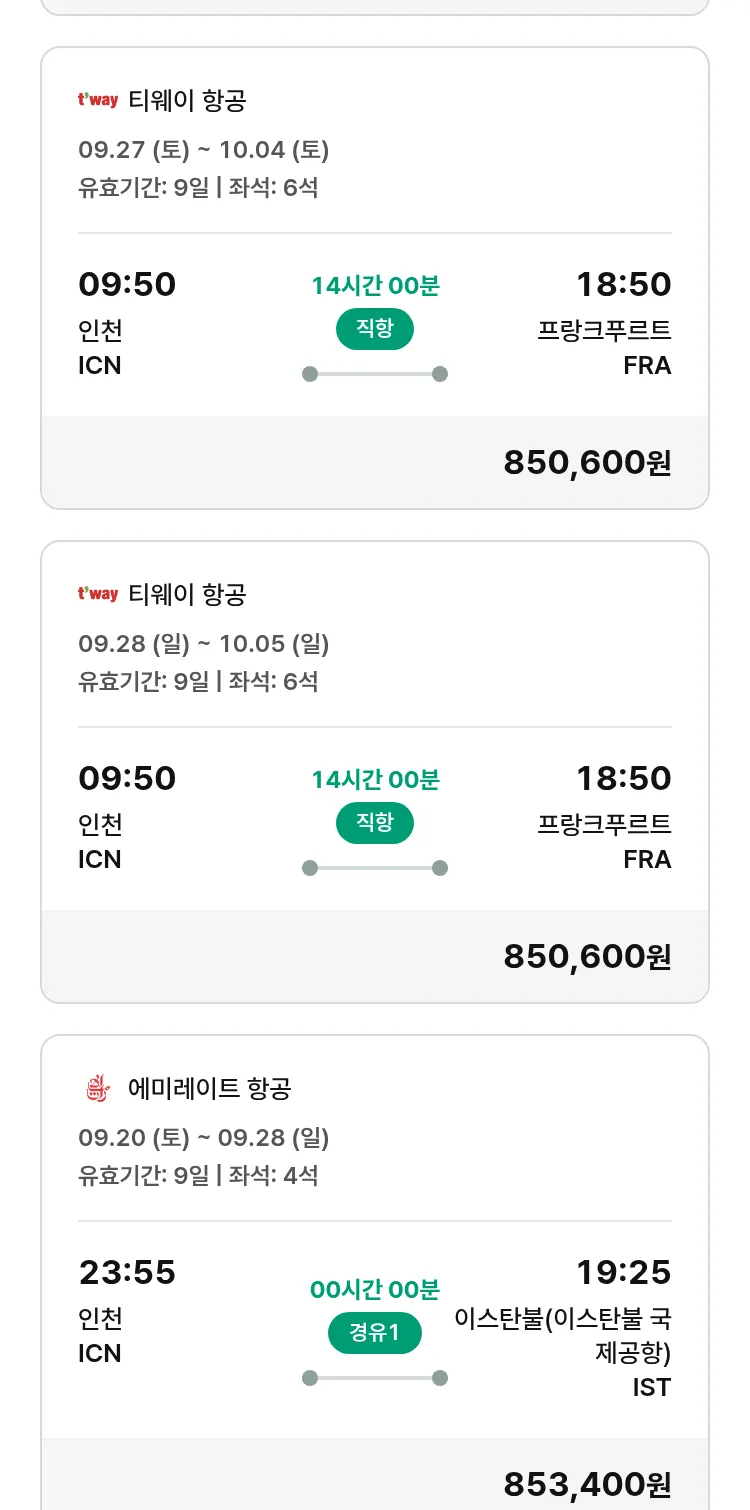 (9월6일(토)) 모두투어 유럽 특가 항공권