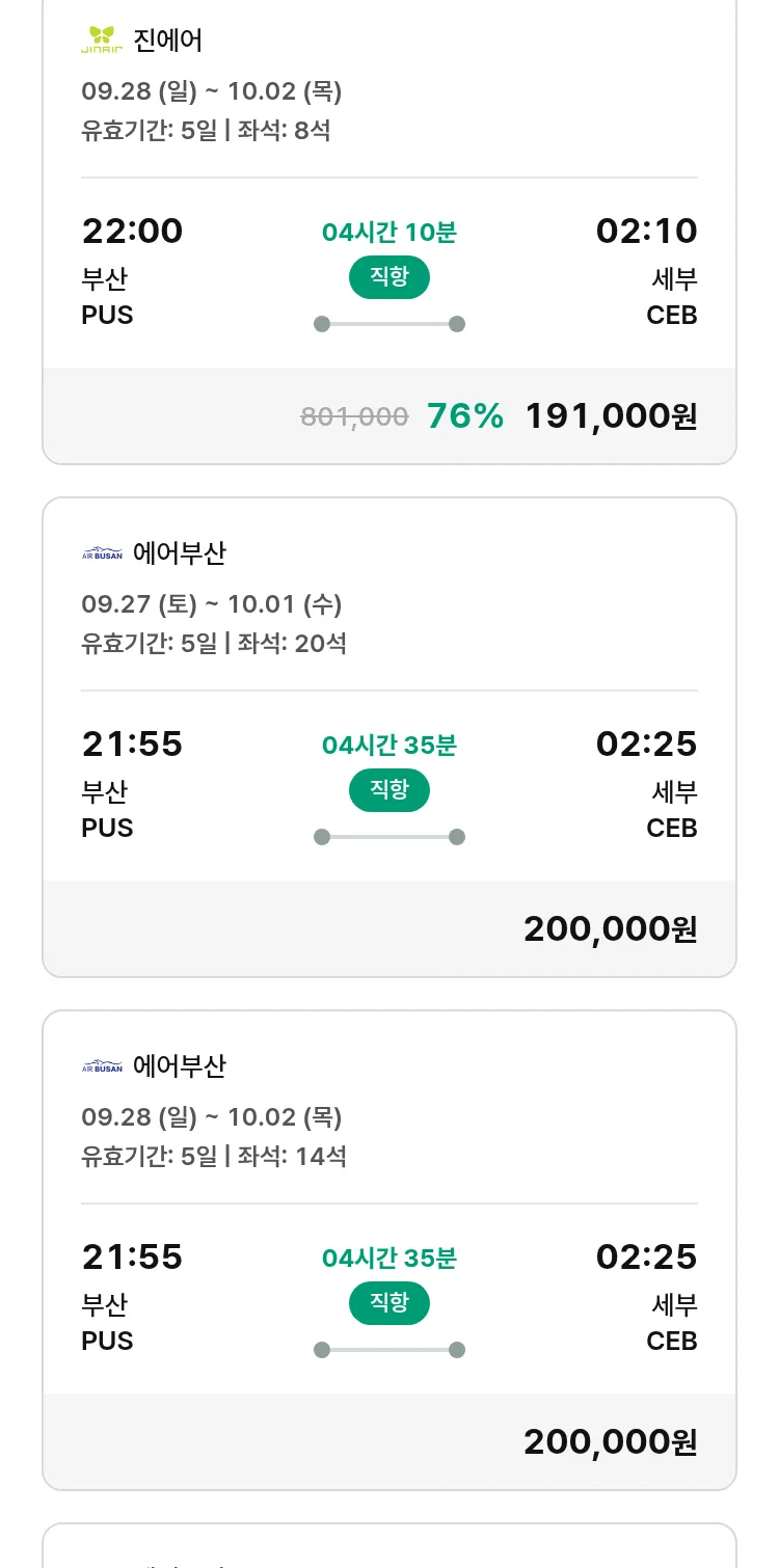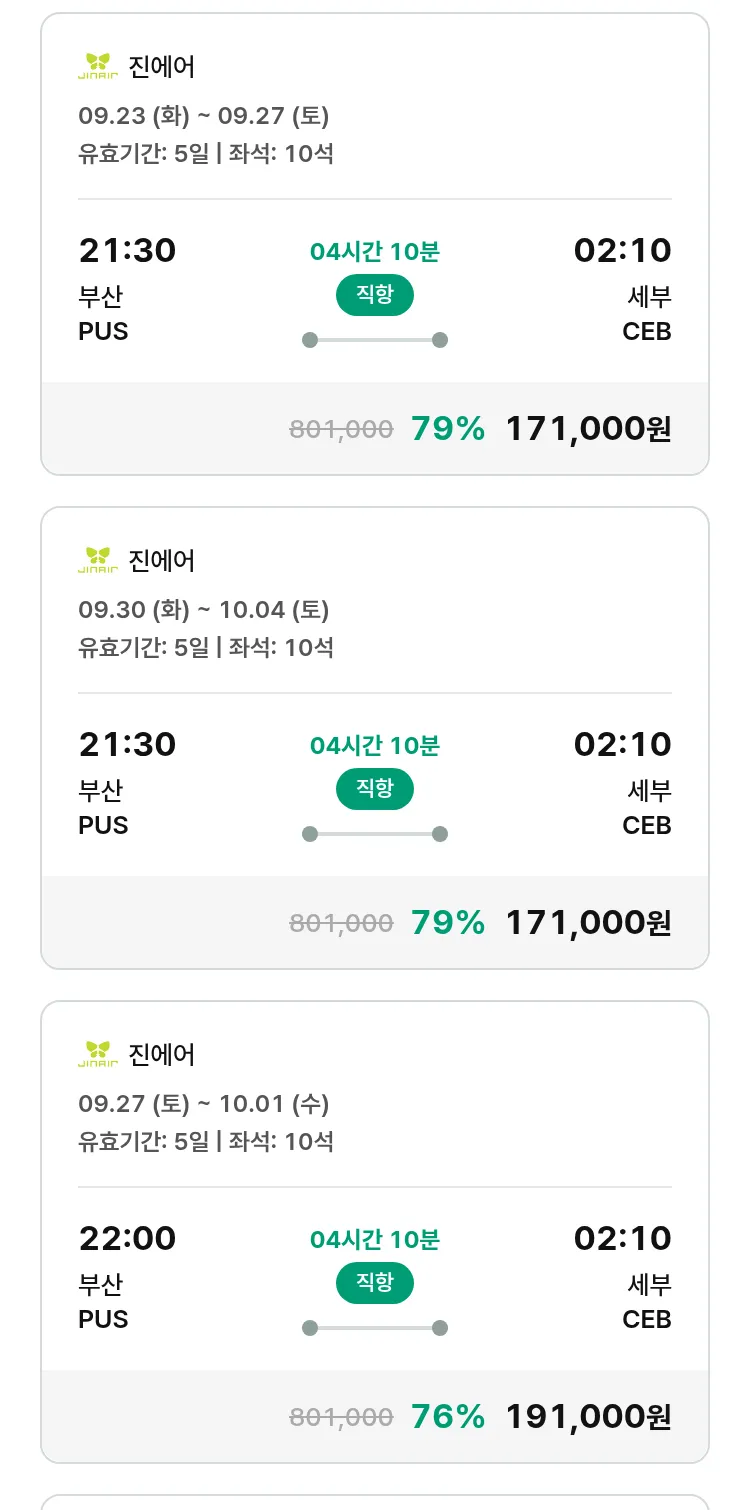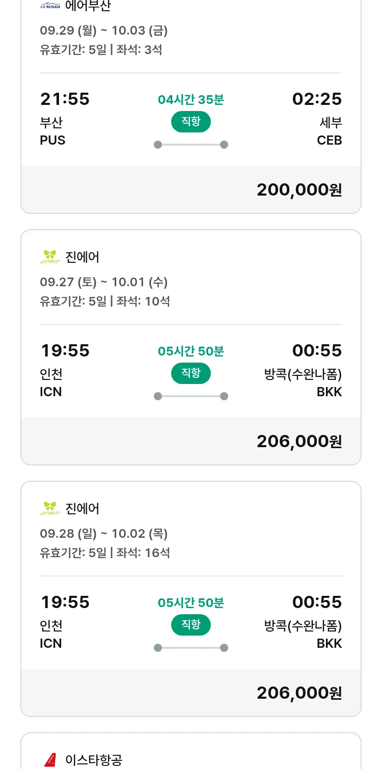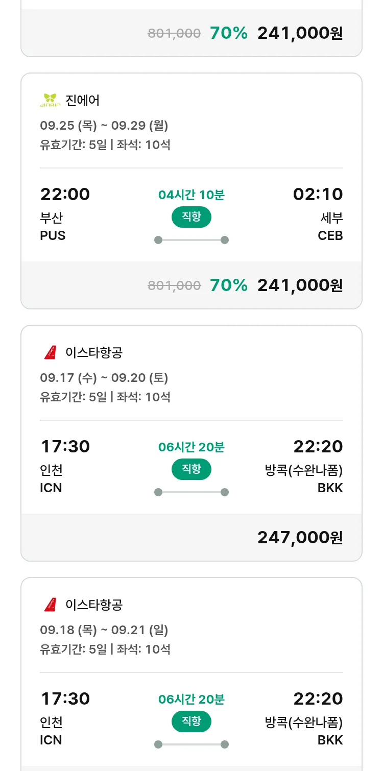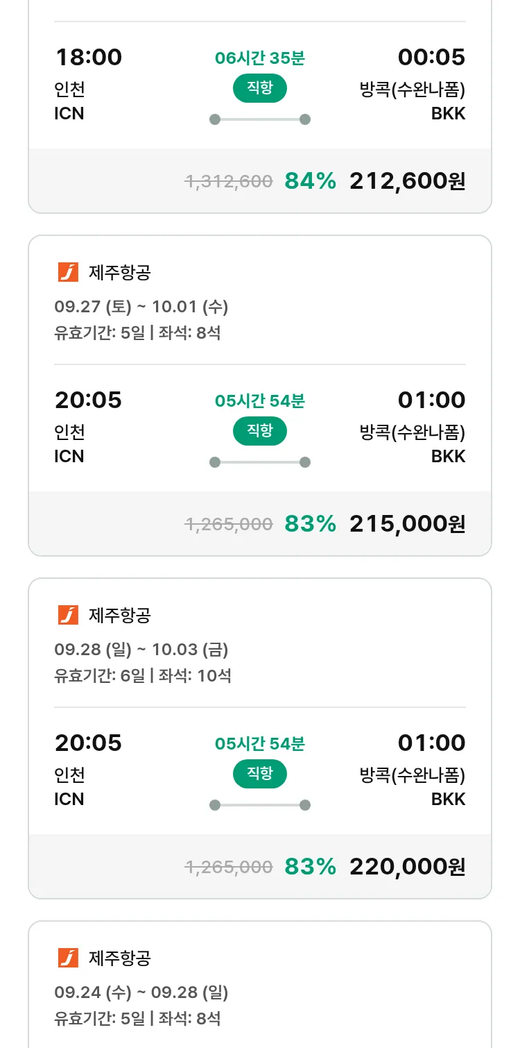 (9월5일(금)) 땡처리 특가 항공권