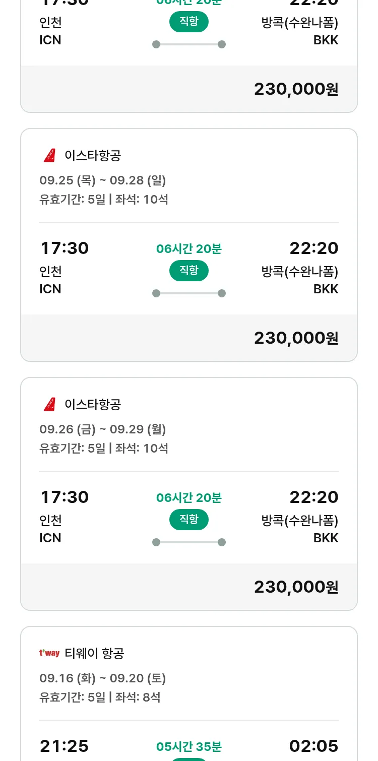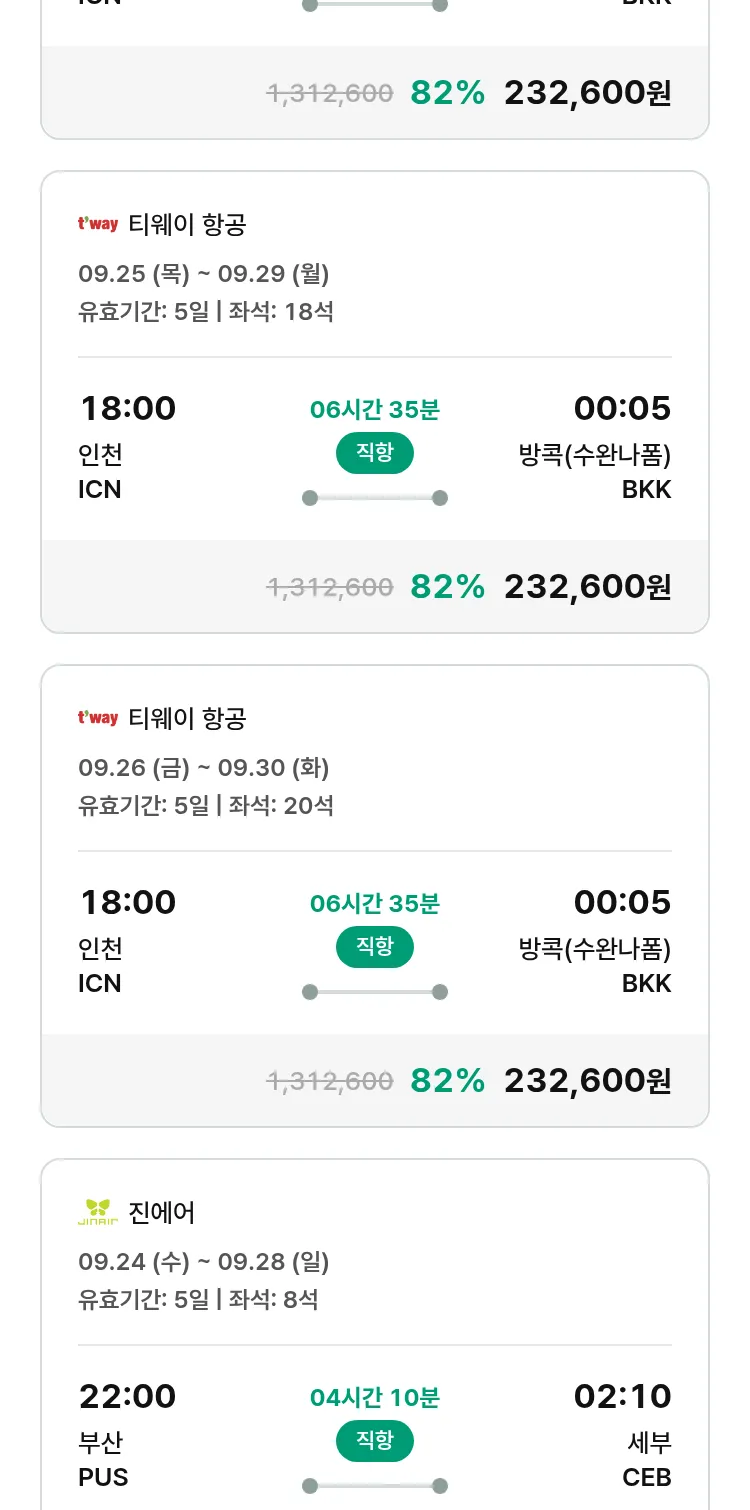 (9월6일(토)) 땡처리 특가 항공권