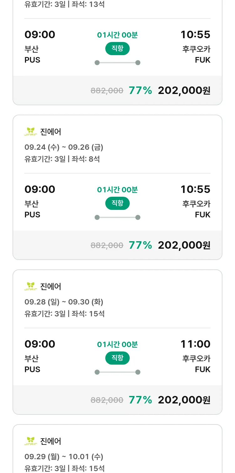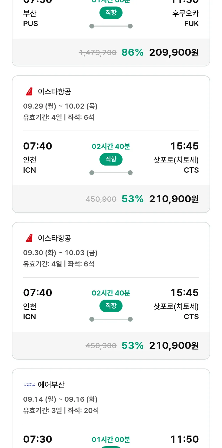 (9월6일(토)) 모두투어 일본 특가 항공권