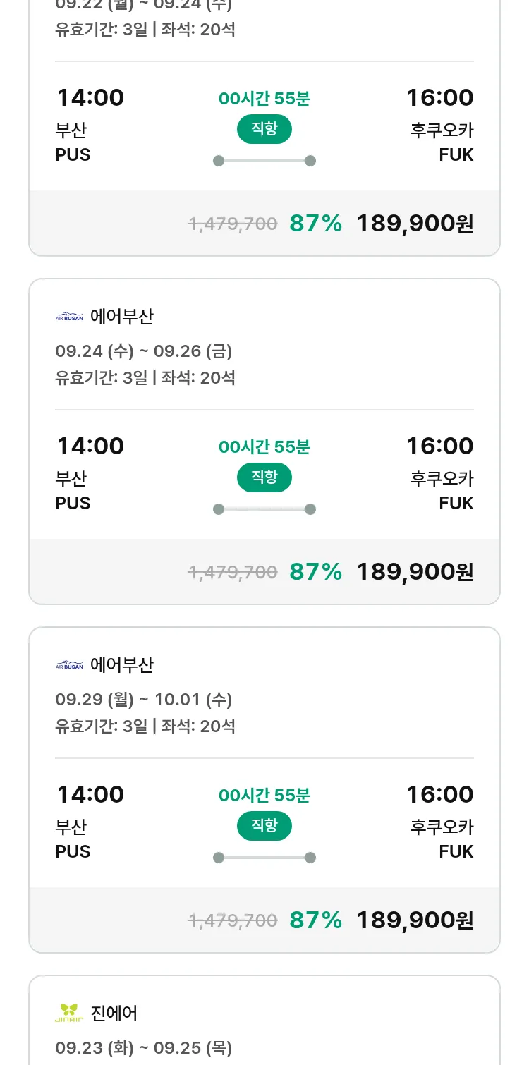 (9월5일(금)) 모두투어 일본 특가 항공권