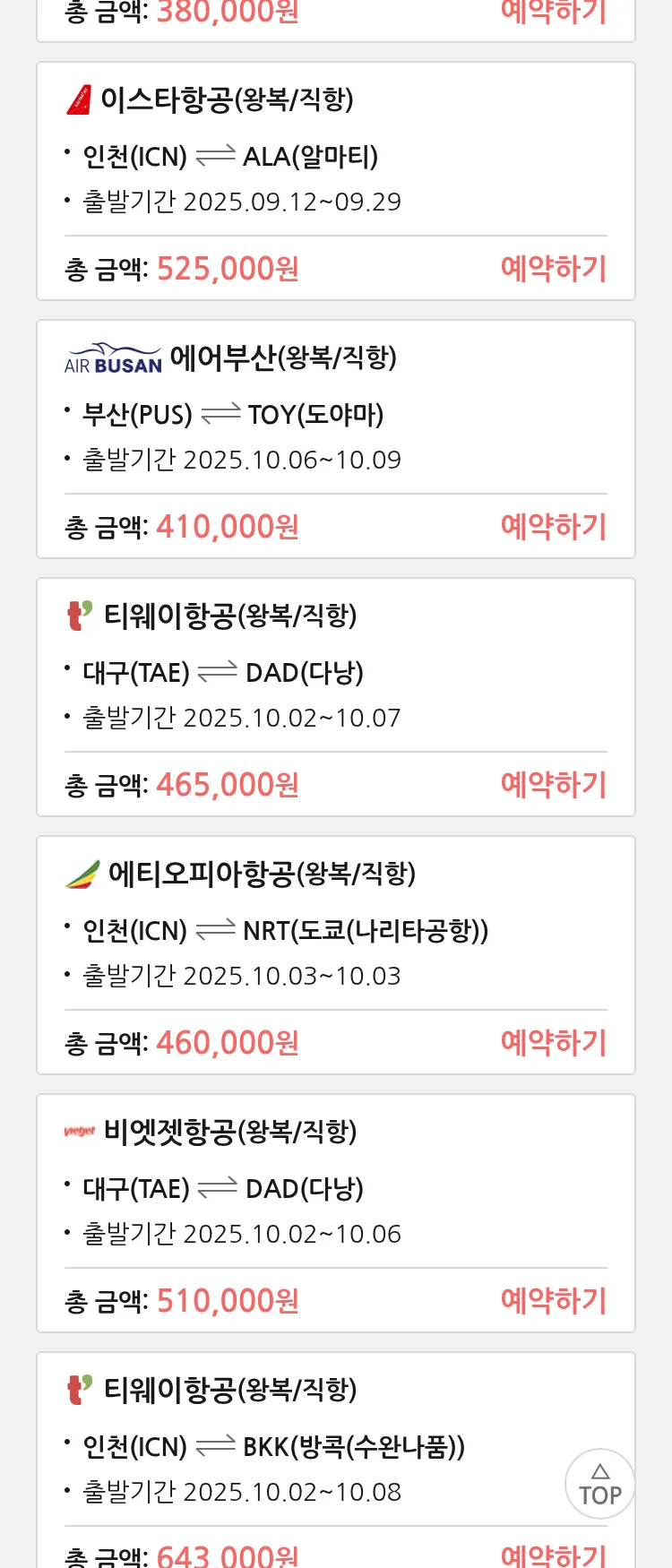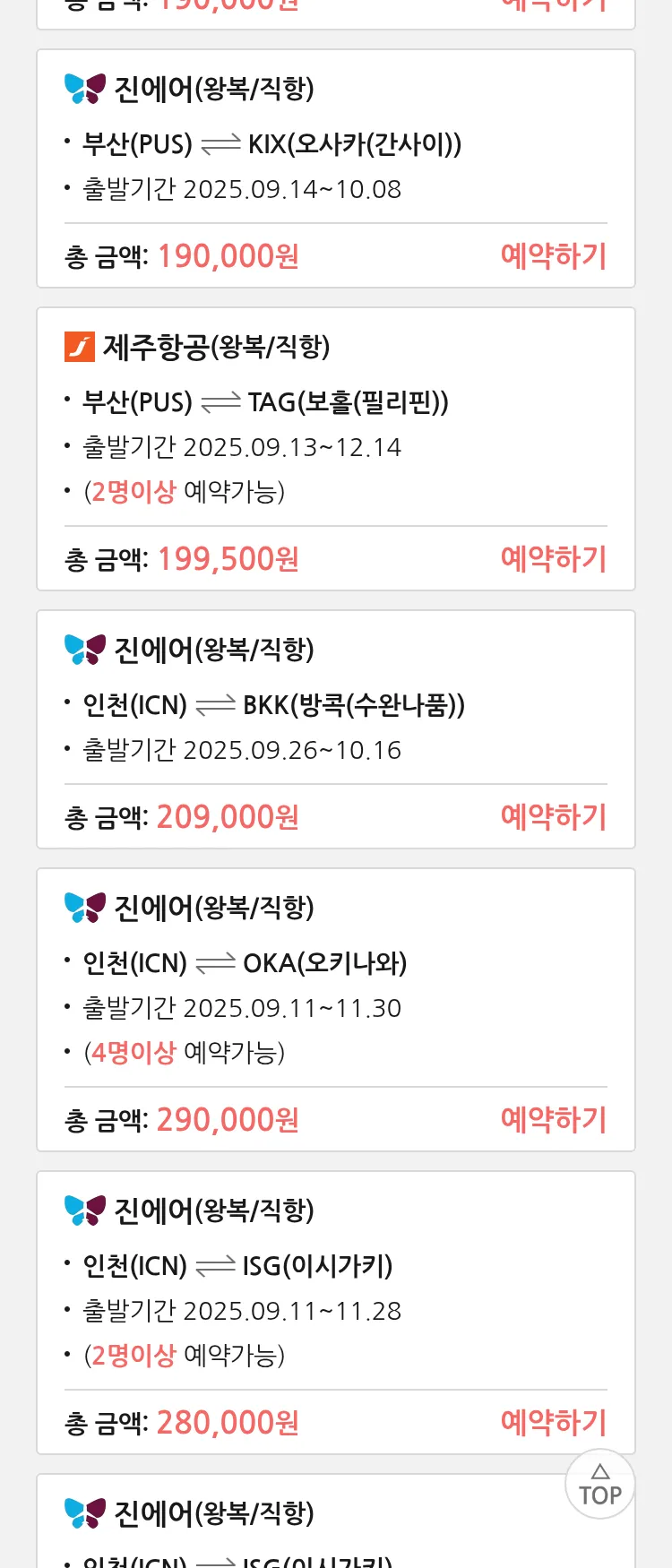 (9월8일(월)) 땡처리 특가 항공권