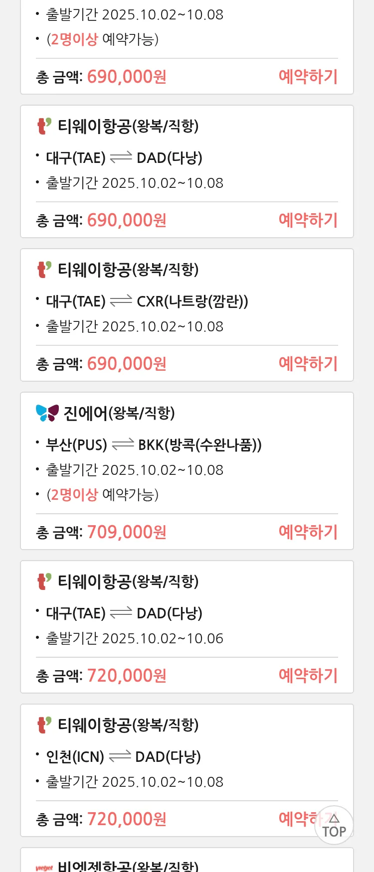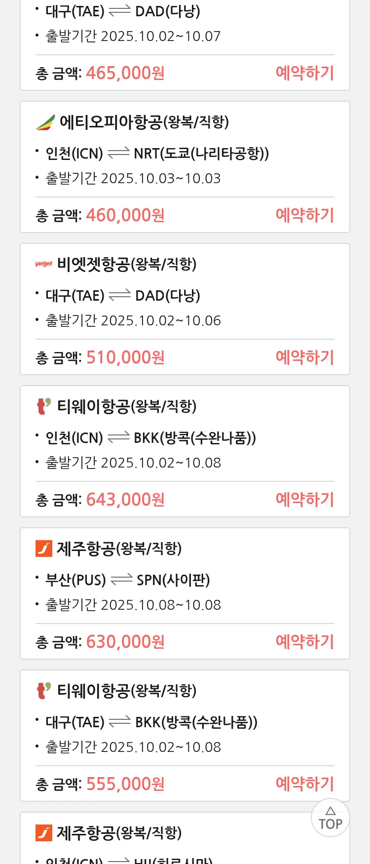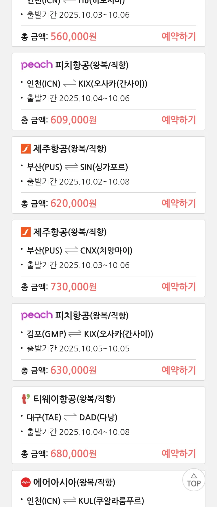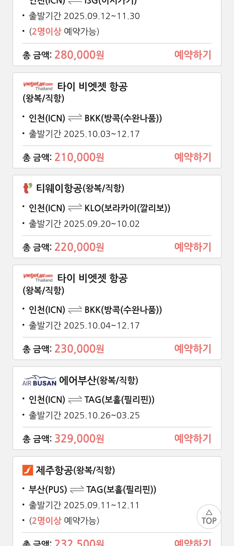 (9월8일(월)) 땡처리 99.9% 확정 항공권