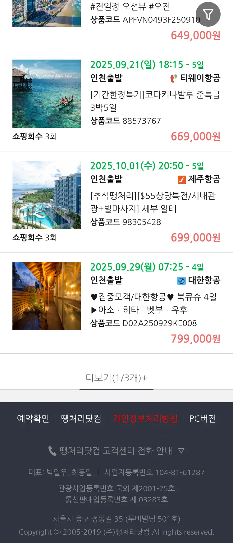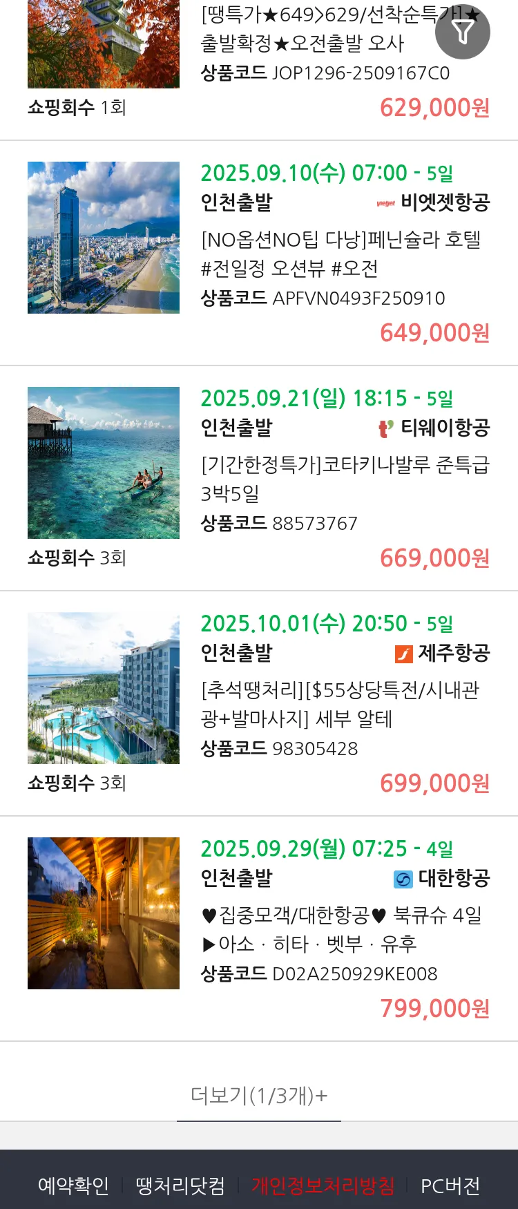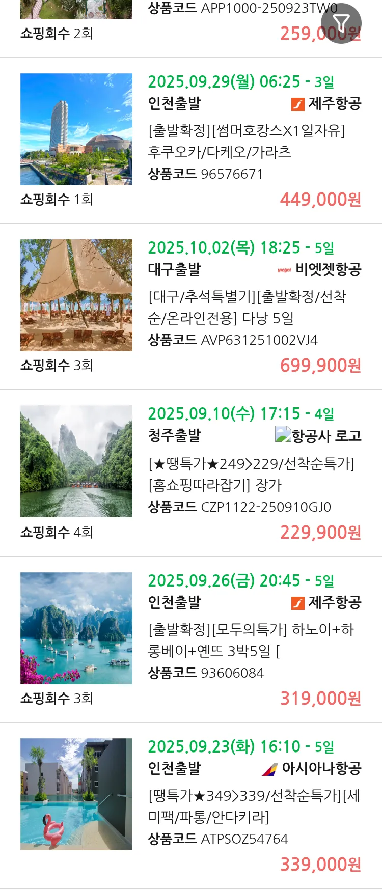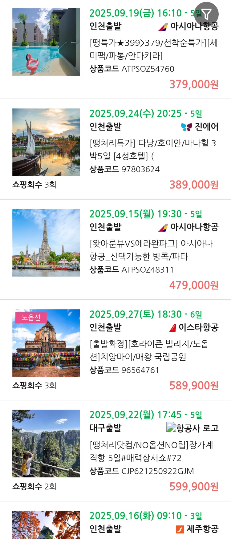 (9월8일(월)) 땡처리 연휴 패키지 항공권
