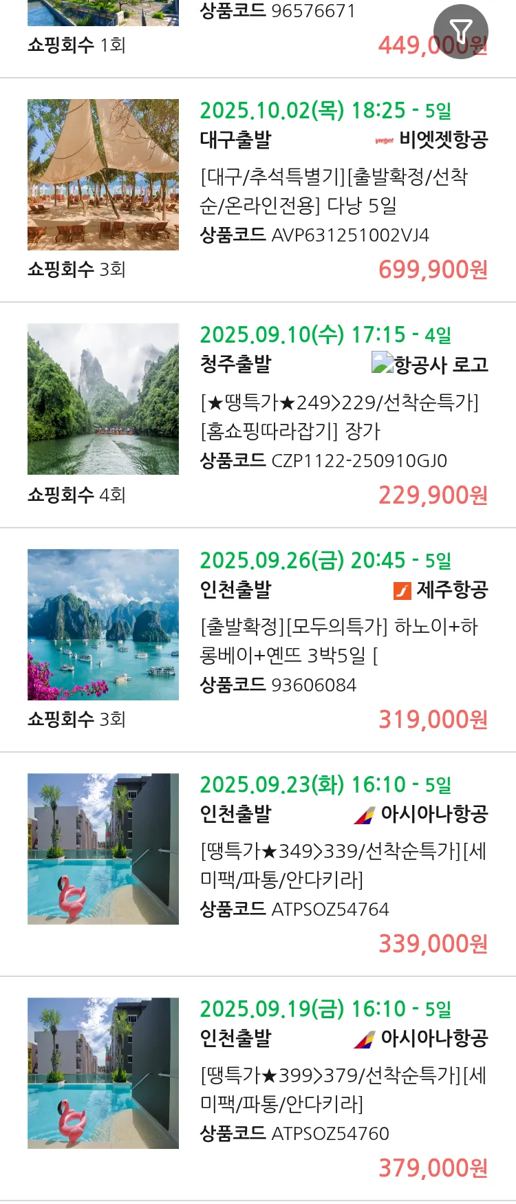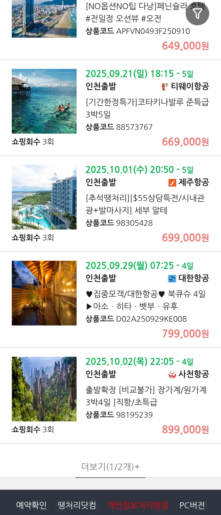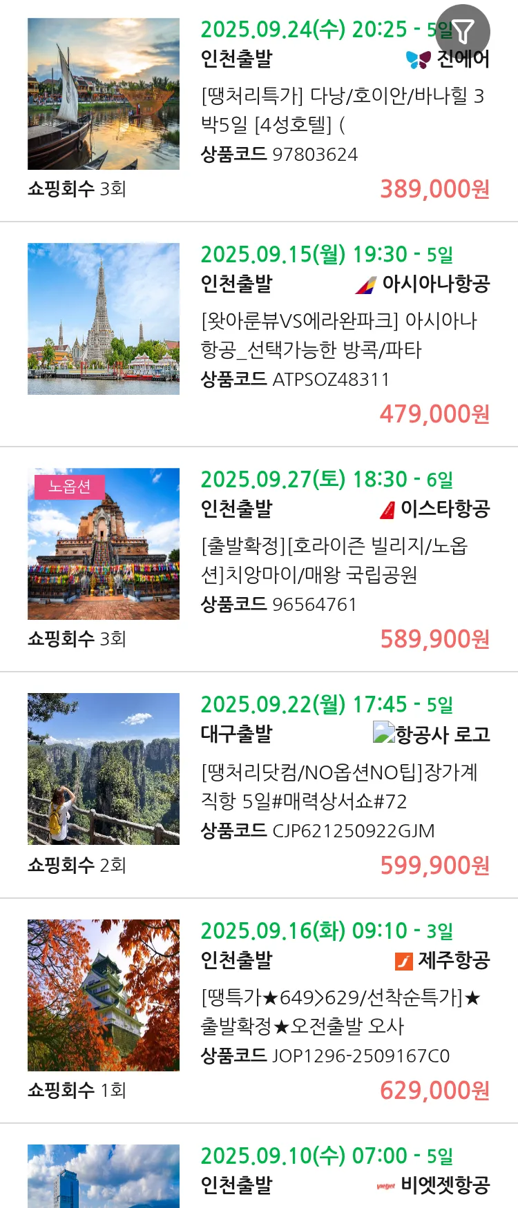 (9월8일(월)) 땡처리 연휴 패키지 항공권