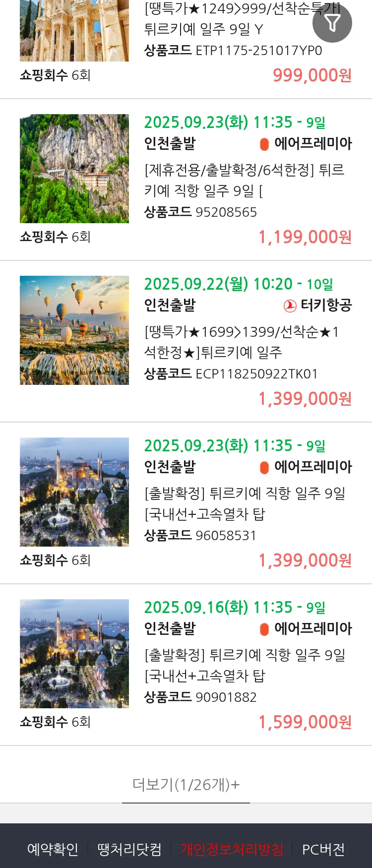 (9월8일(월)) 땡처리 연휴 패키지 항공권