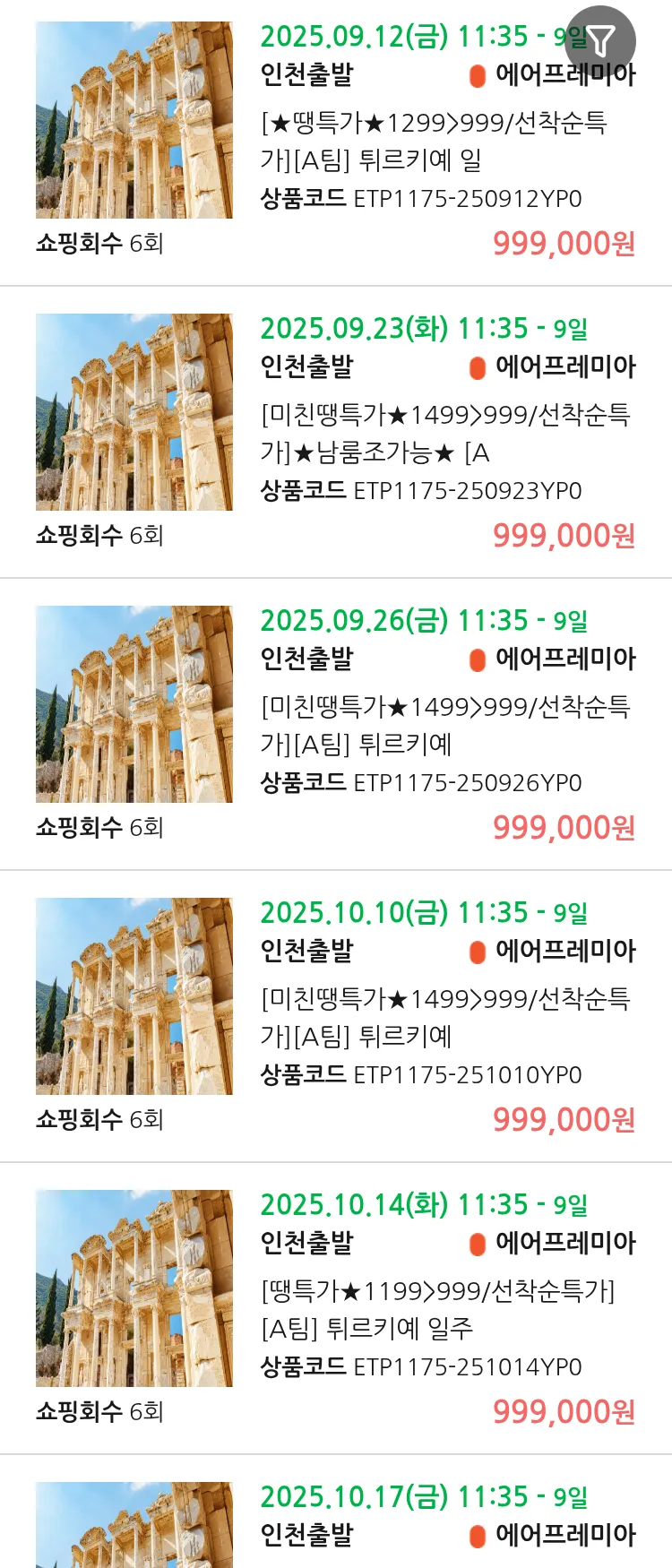 (9월8일(월)) 땡처리 99.9% 확정 항공권