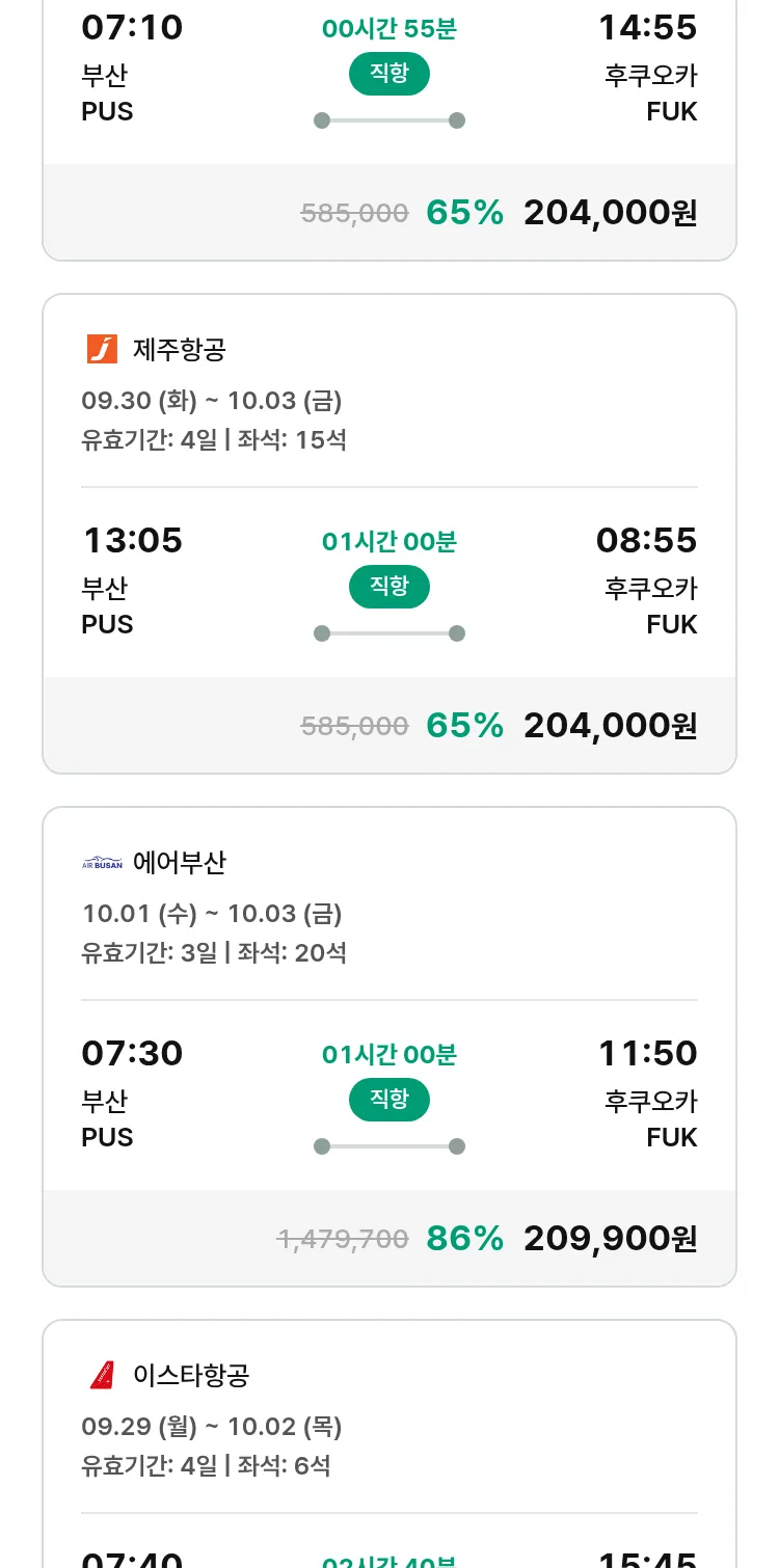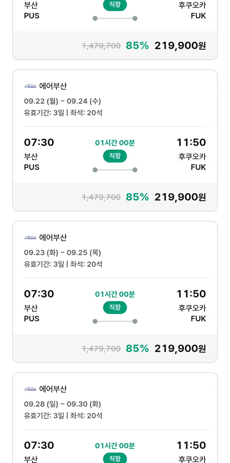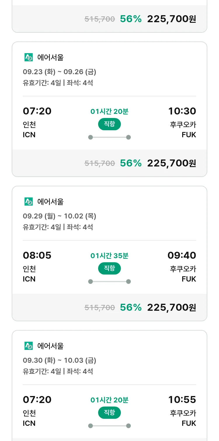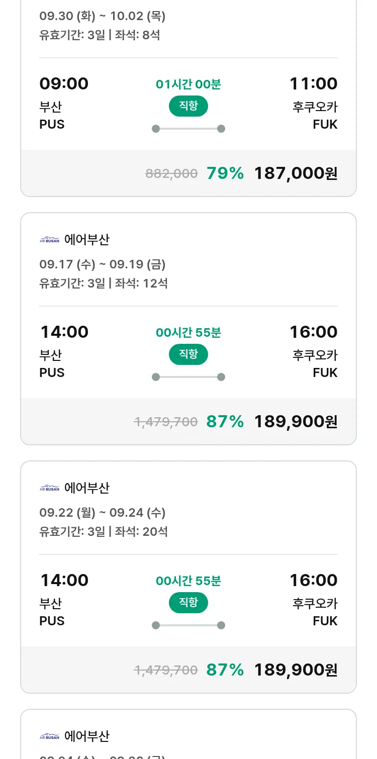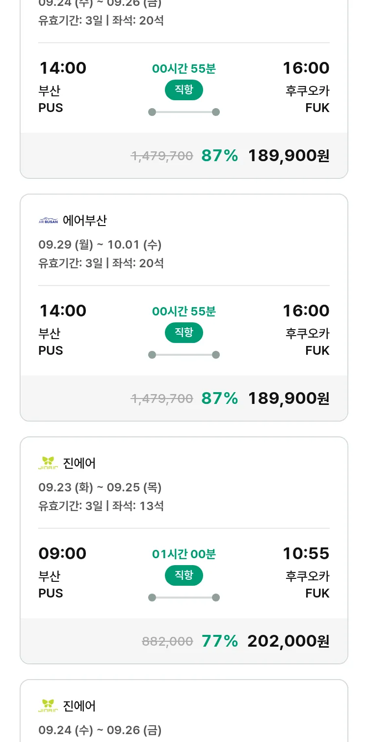 (9월8일(월)) 땡처리 99.9% 확정 항공권
