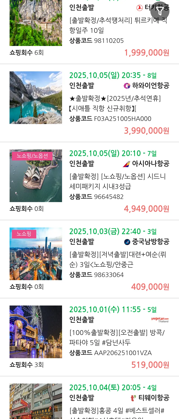 (9월9일(화)) 땡처리 연휴 패키지 항공권