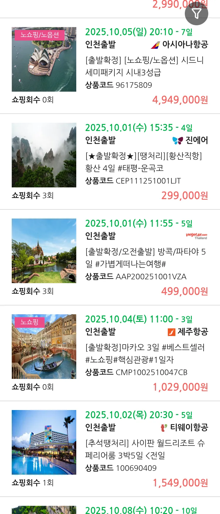 (9월 10일(수)) 땡처리 99.9% 확정 패키지
