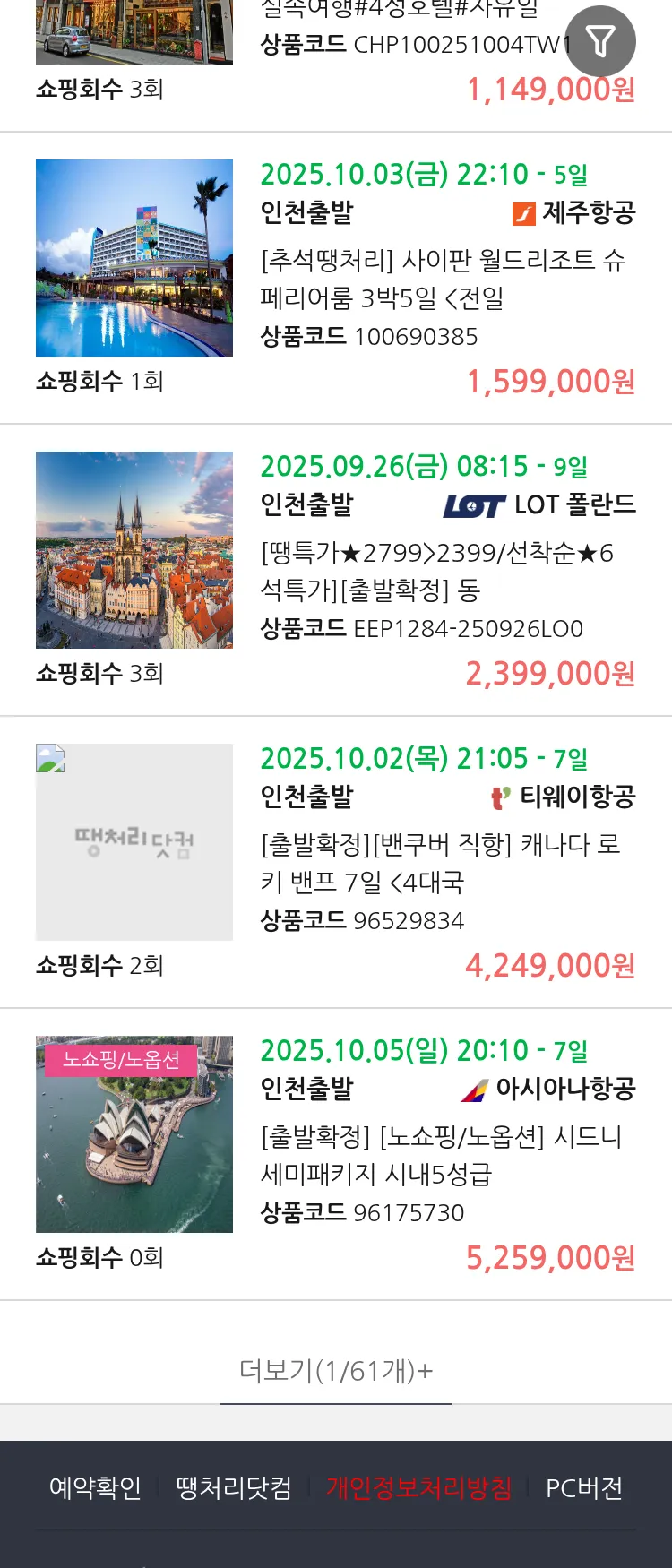 (9월 10일(수)) 땡처리 연휴 패키지 패키지