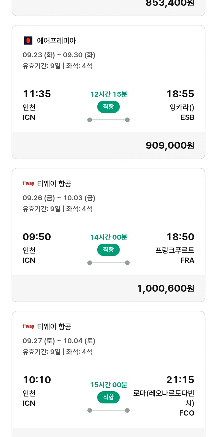 (9월8일(월)) 땡처리 유럽 긴급 항공권