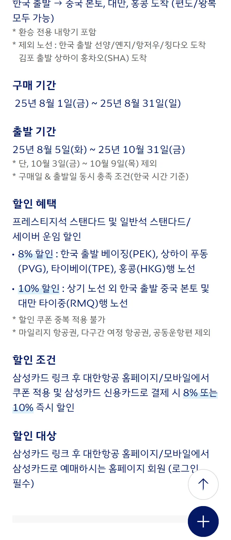 [대한항공]대한항공 X 삼성카드 LINK 중화권 최대 10% 할인