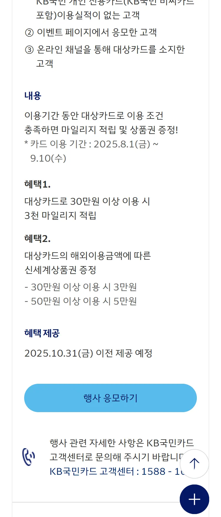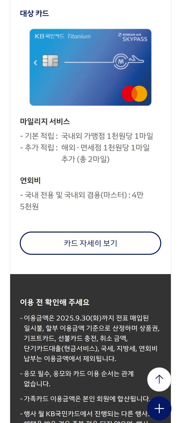 [대한항공][대한항공 x KB국민카드] 3천 마일리지+상품권 혜택을 드립니다. ('25.8)