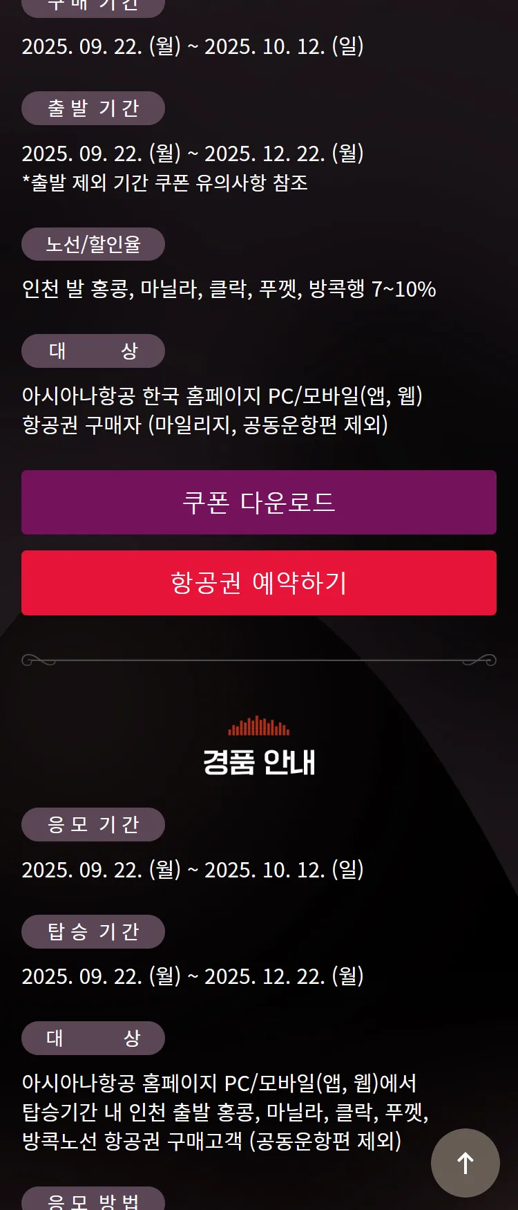 [아시아나항공]오늘, 내일, 모레 출발 전용 항공권 할인쿠폰