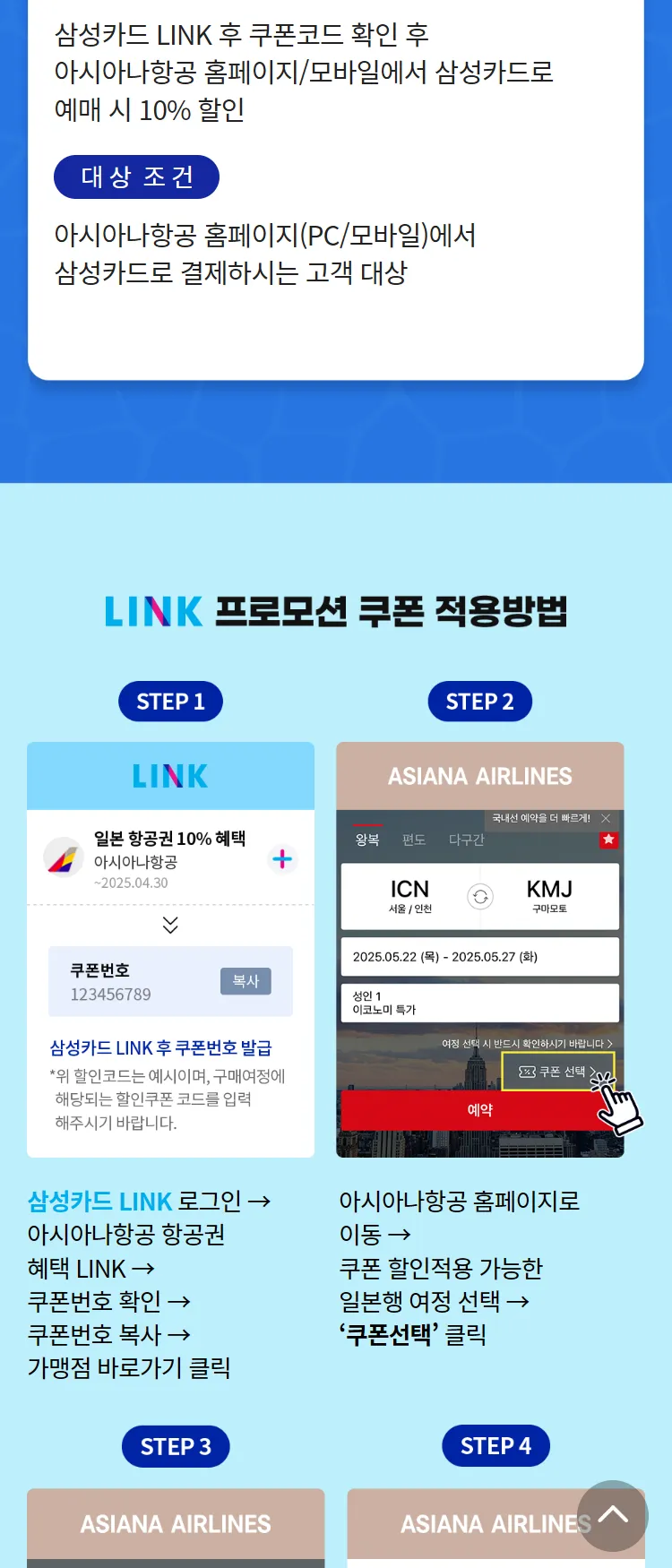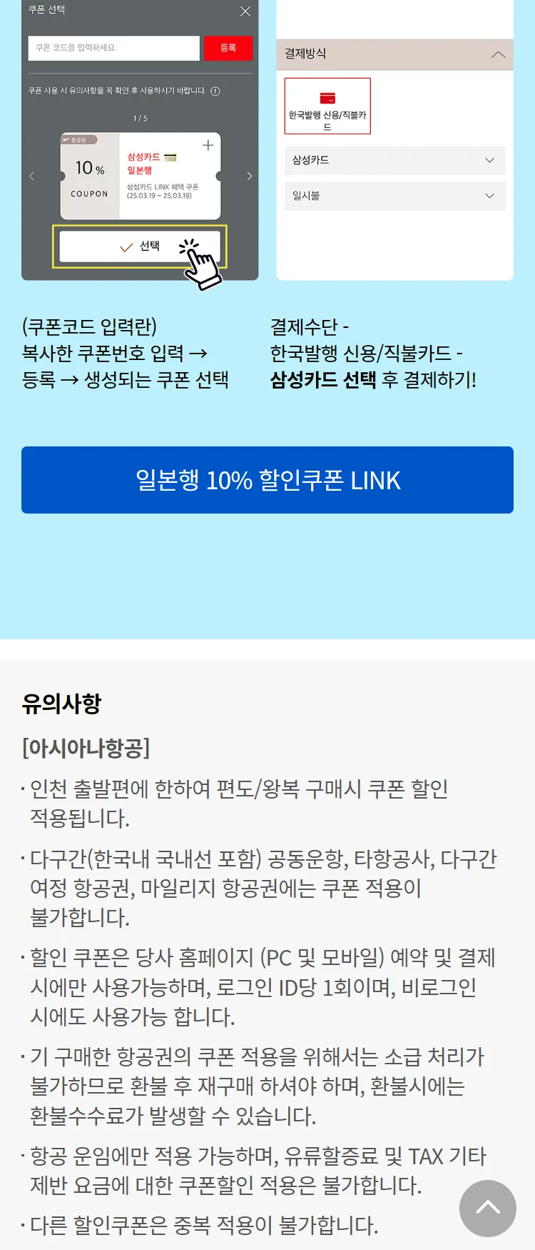 [아시아나항공]삼성카드 LINK 혜택을 링크하면 일본노선 항공권 10%할인