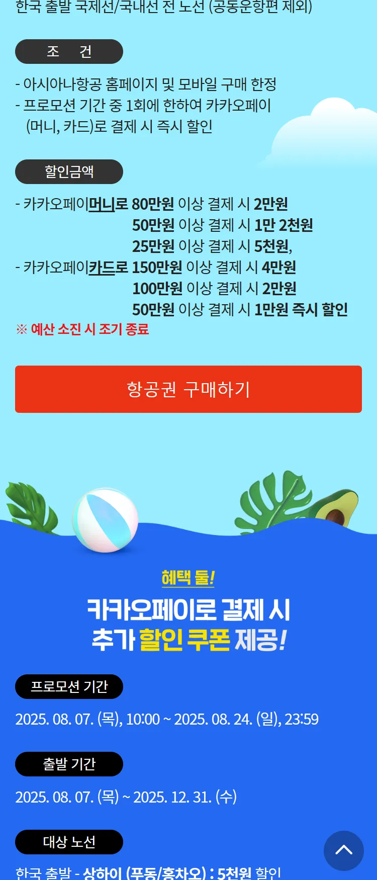 [아시아나항공]카카오페이로 결제 시 즉시 할인!