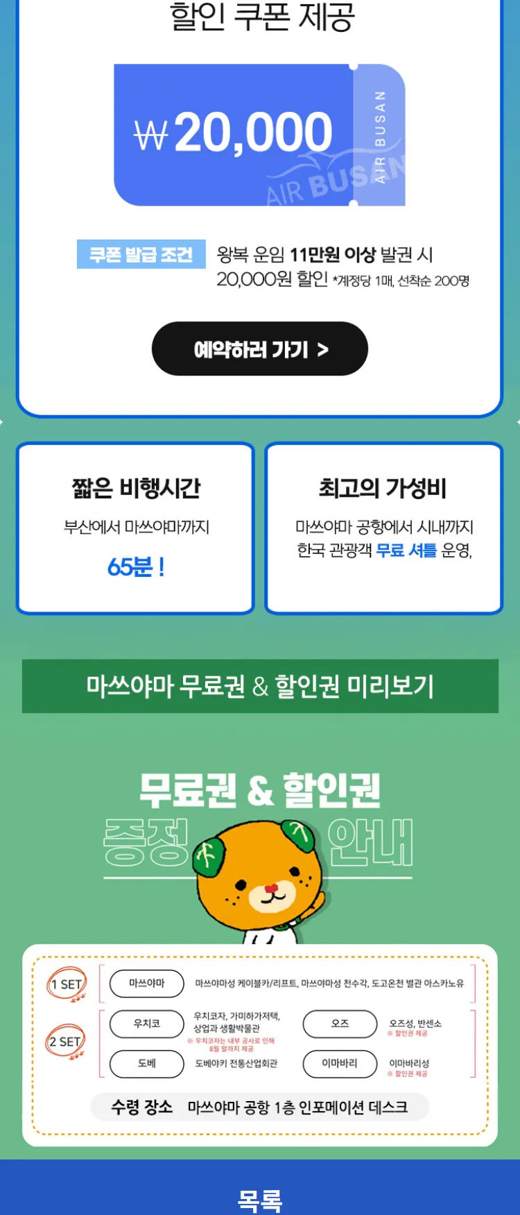 [에어부산]부산-마쓰야마 2만원 할인쿠폰 프로모션