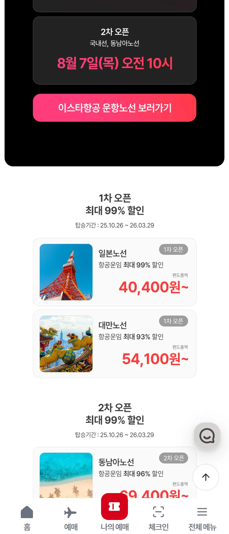 [이스타항공]부산발 전노선 특가