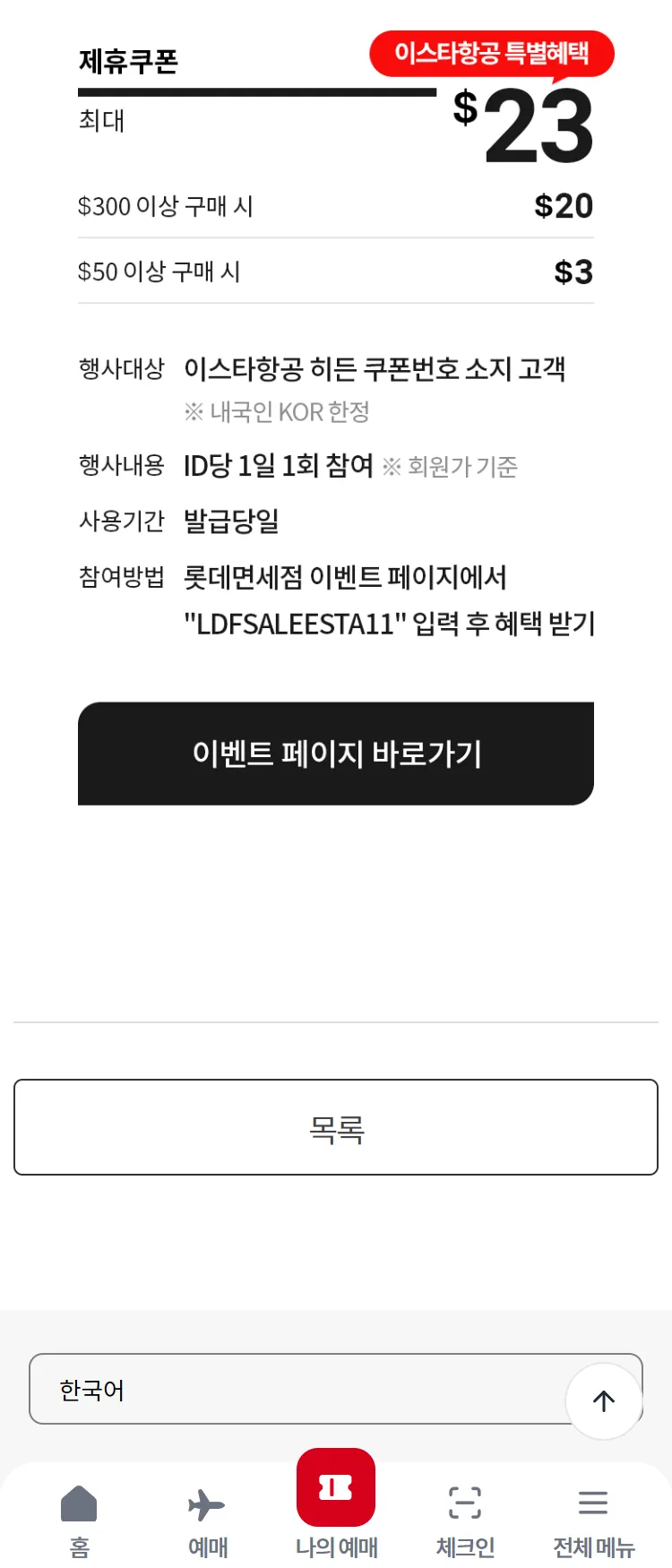 [이스타항공]"11/7" 롯데 면세점 블파 한정 혜택 "면세일"