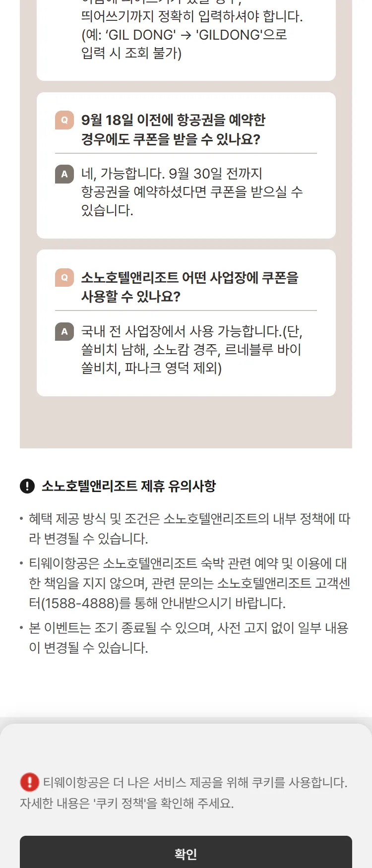[티웨이]소노호텔앤리조트 제휴 할인