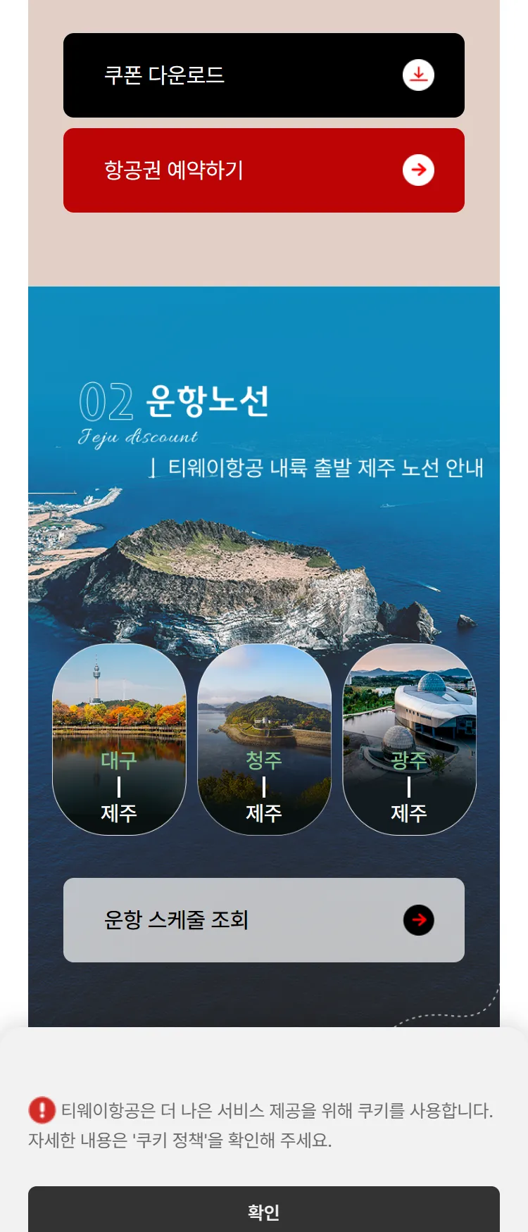 [티웨이]제주 2만원 할인