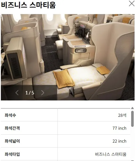 편안함을 자랑하는 비즈니스 스마티움 좌석으로 여행할 수 있는 절호의 기회를 놓치지 마세요.