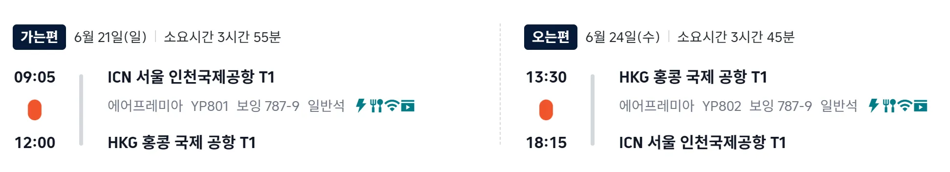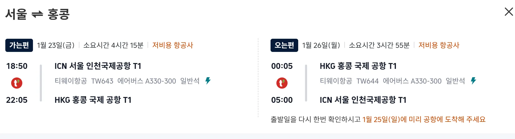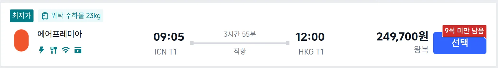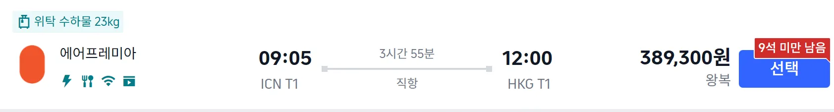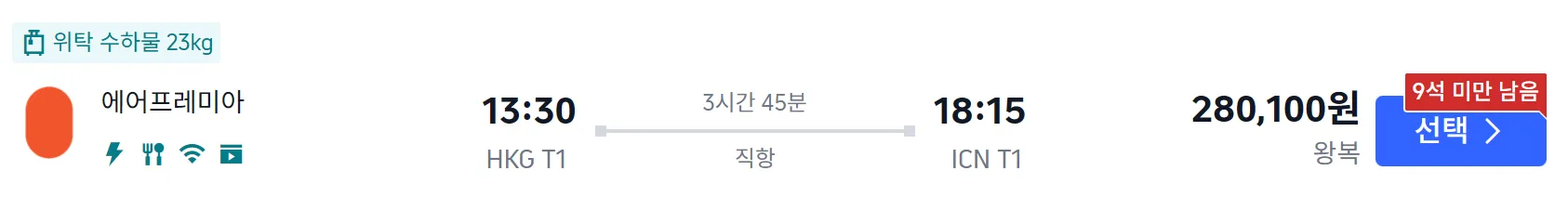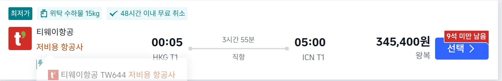 이두님 요청사항으로 홍콩 항공권을 찾아 보았습니다.