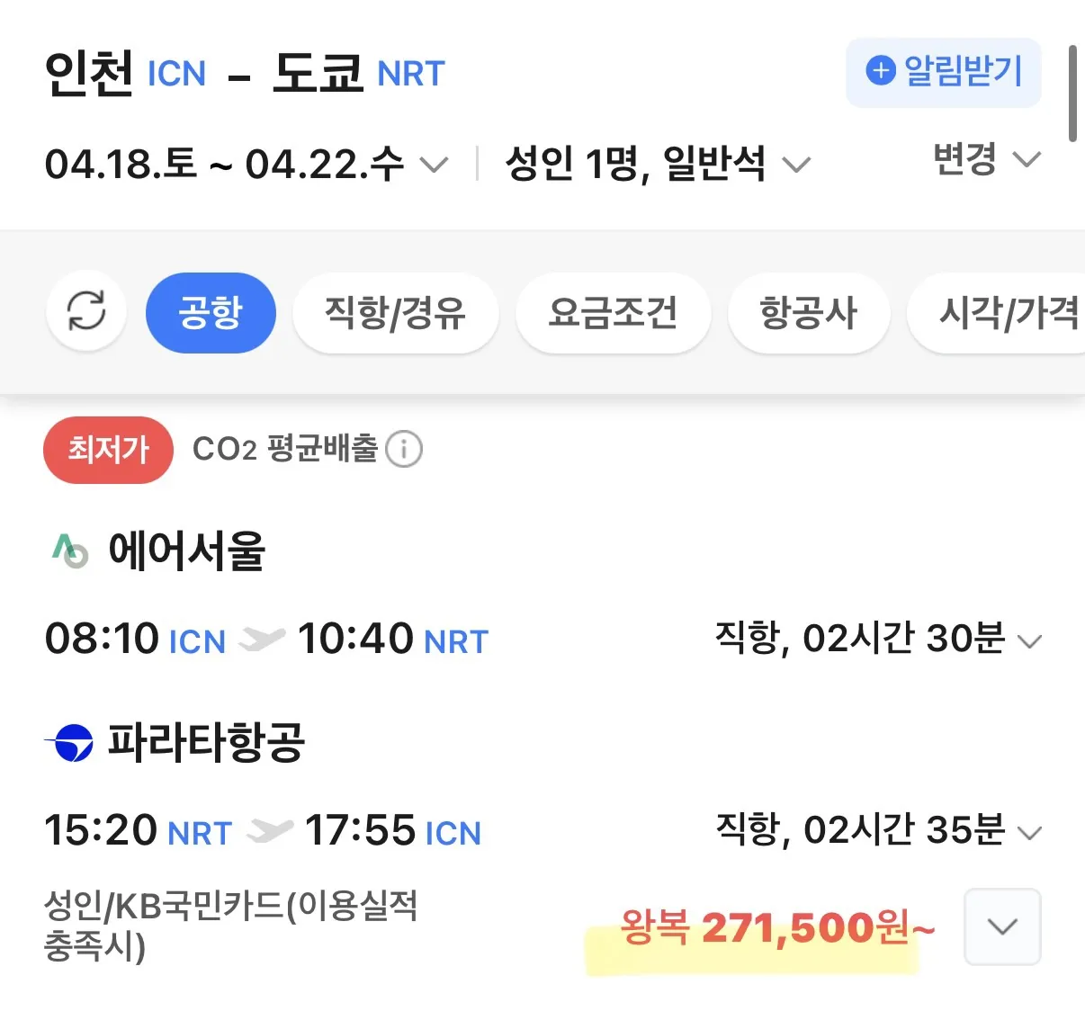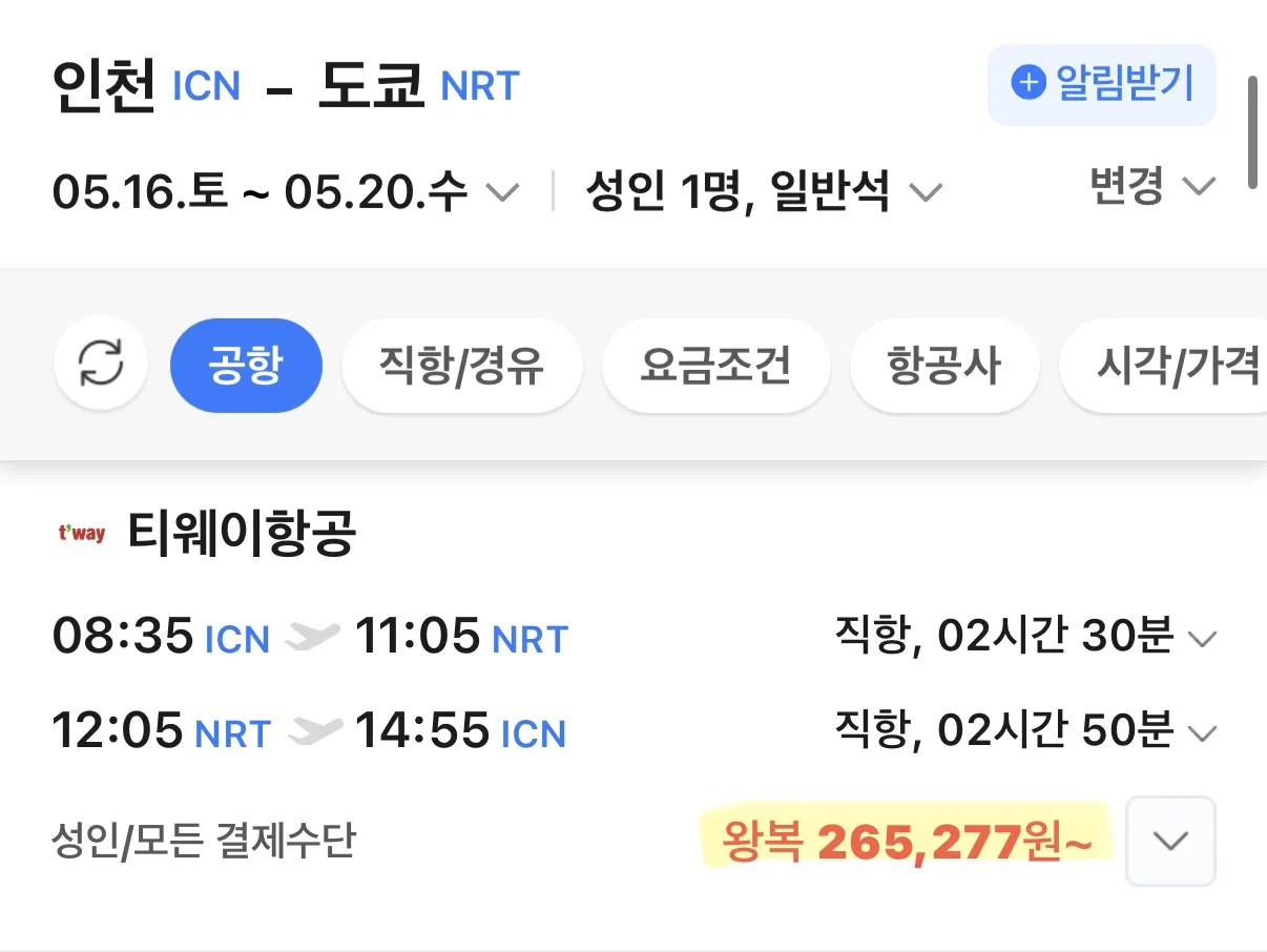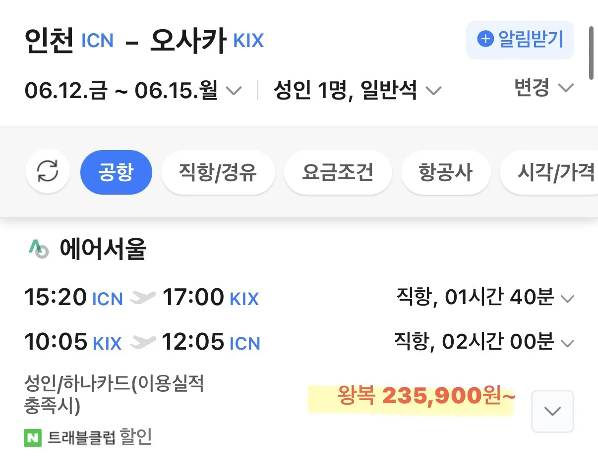 요즘 도쿄와 오사카행 항공권이 정말 매력적이에요.
