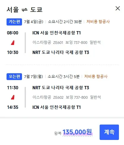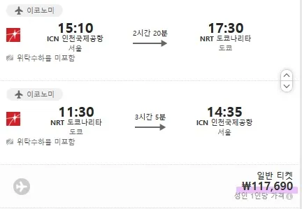 부산-도쿄 왕복 항공권 특가 정보, 151,000원