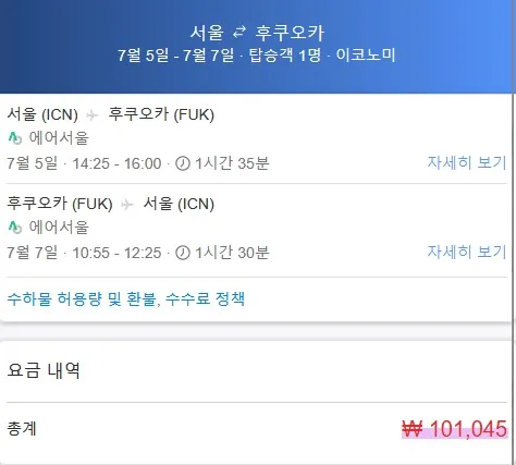 인천에서 다낭까지의 저렴한 항공권, 총 비용 143,633원