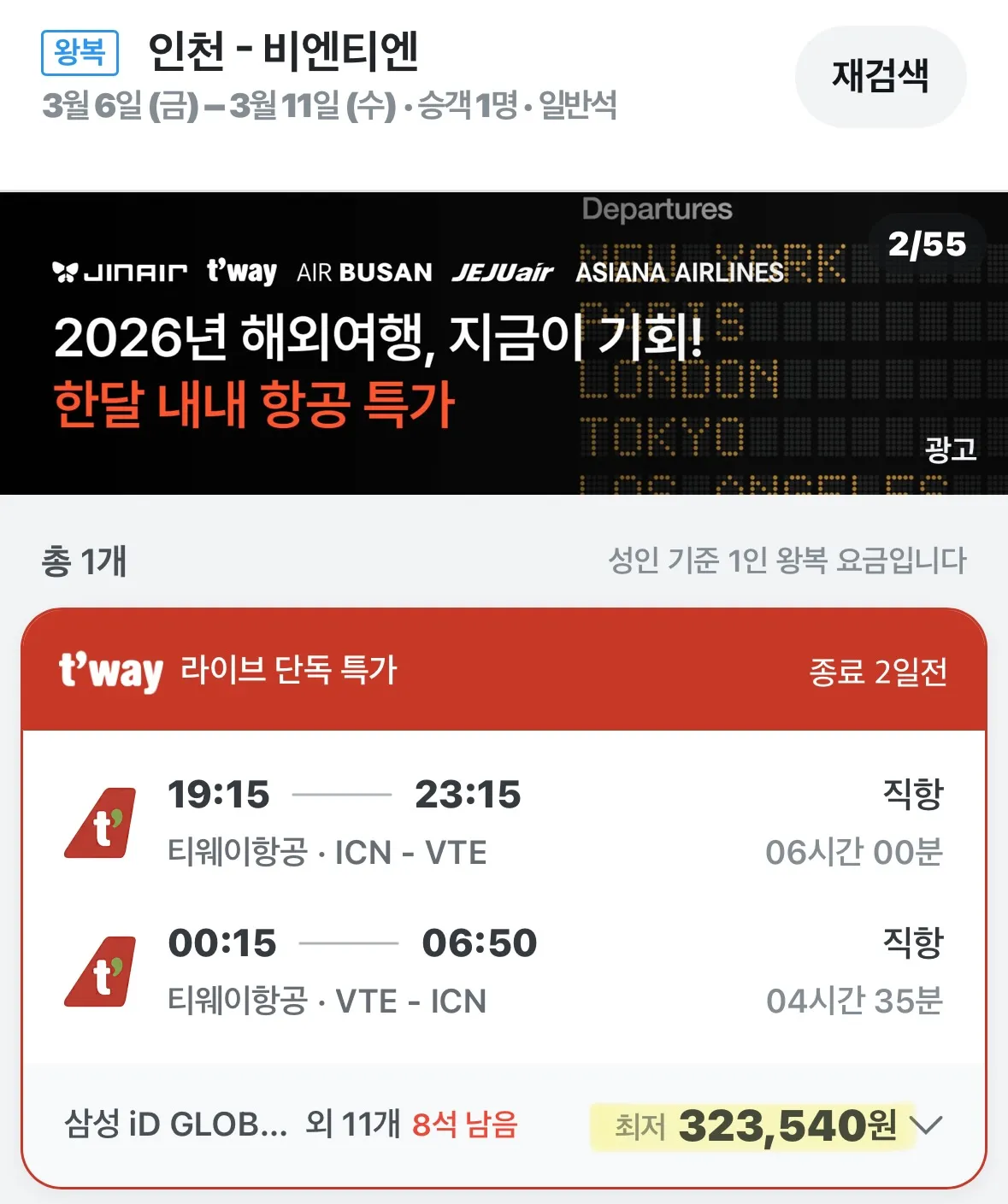 📅 1~3월 출발 최저가 항공권(동남아)- 1/13(화) (인천/김해/청주 출발)