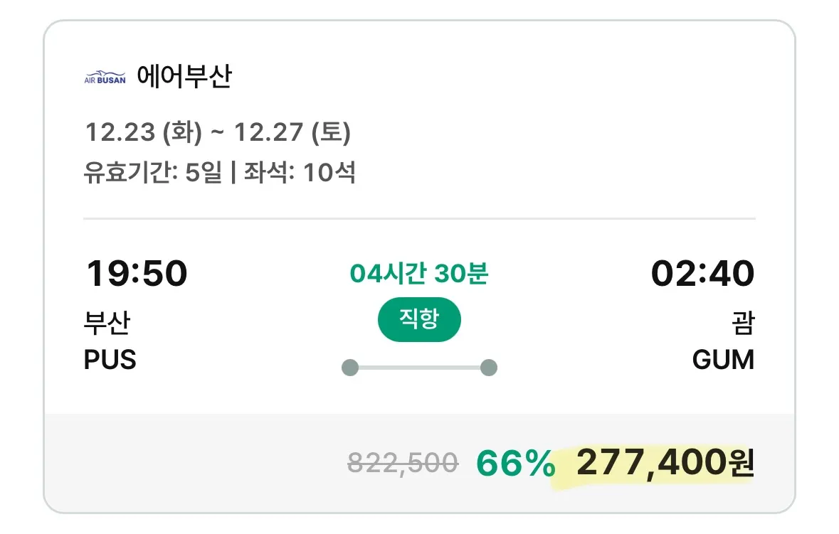 혹시 괌에서 크리스마스를 보내고 싶으신가요? 괌으로 가는 항공권이 27만원대에 있어요.