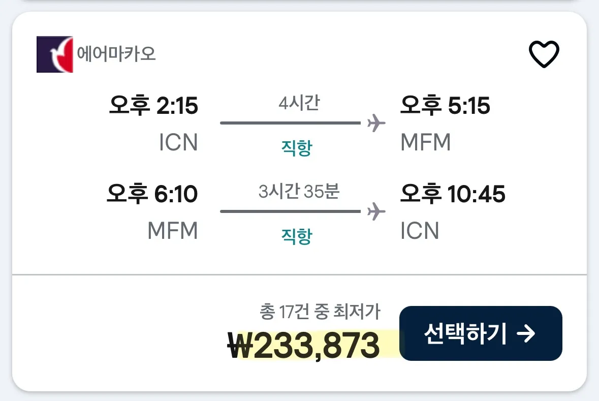 마카오 호캉스의 매력: 한국에서 마카오까지, 약 93만원