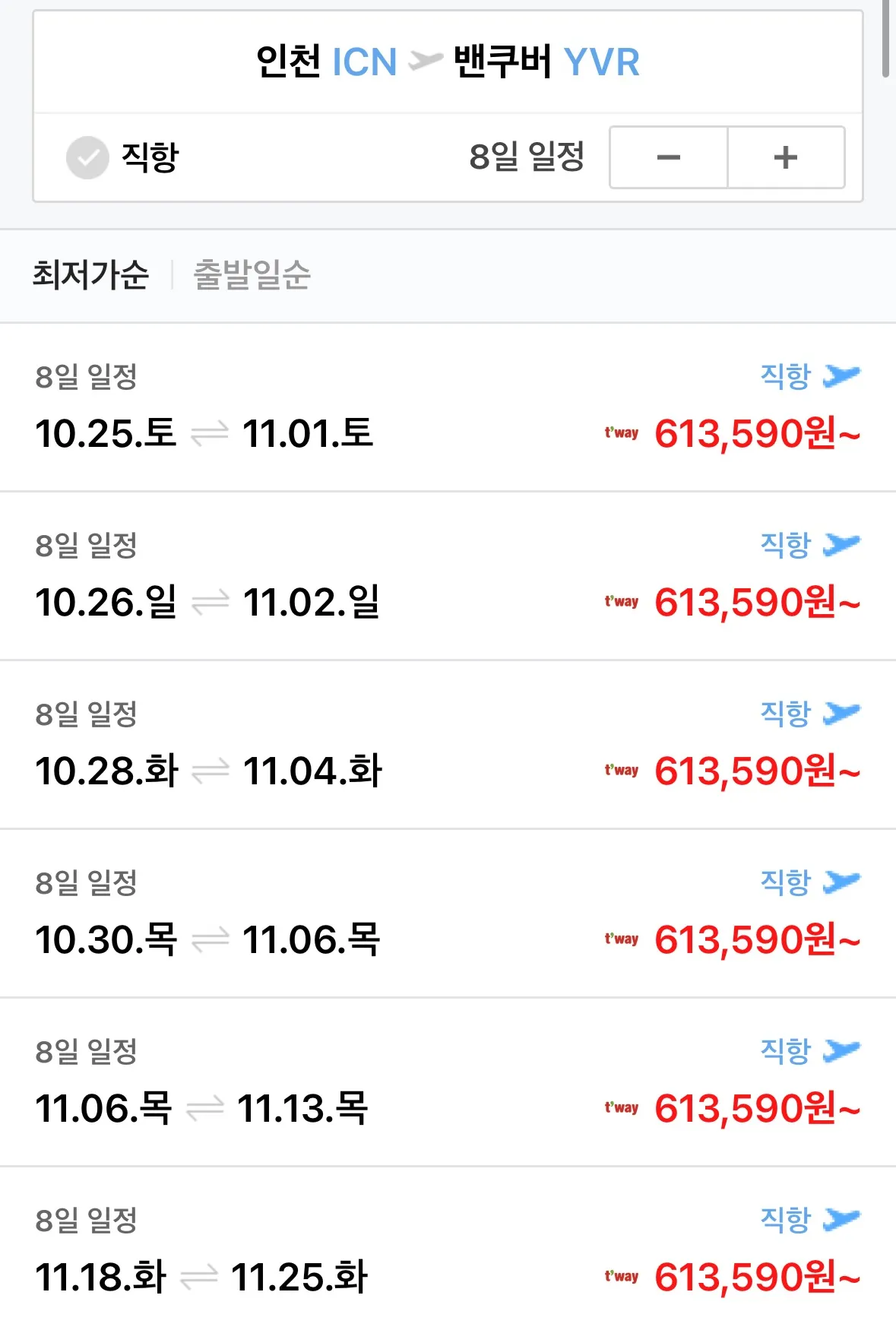 요즘 티웨이항공에서 밴쿠버로 가는 항공권 가격이 정말 저렴해요.