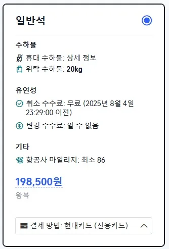 저가 항공이라 그런가 싶은데, 여기서 16,000원만 더하면 20kg 왕복 수화물도 추가할 수 있어요.
