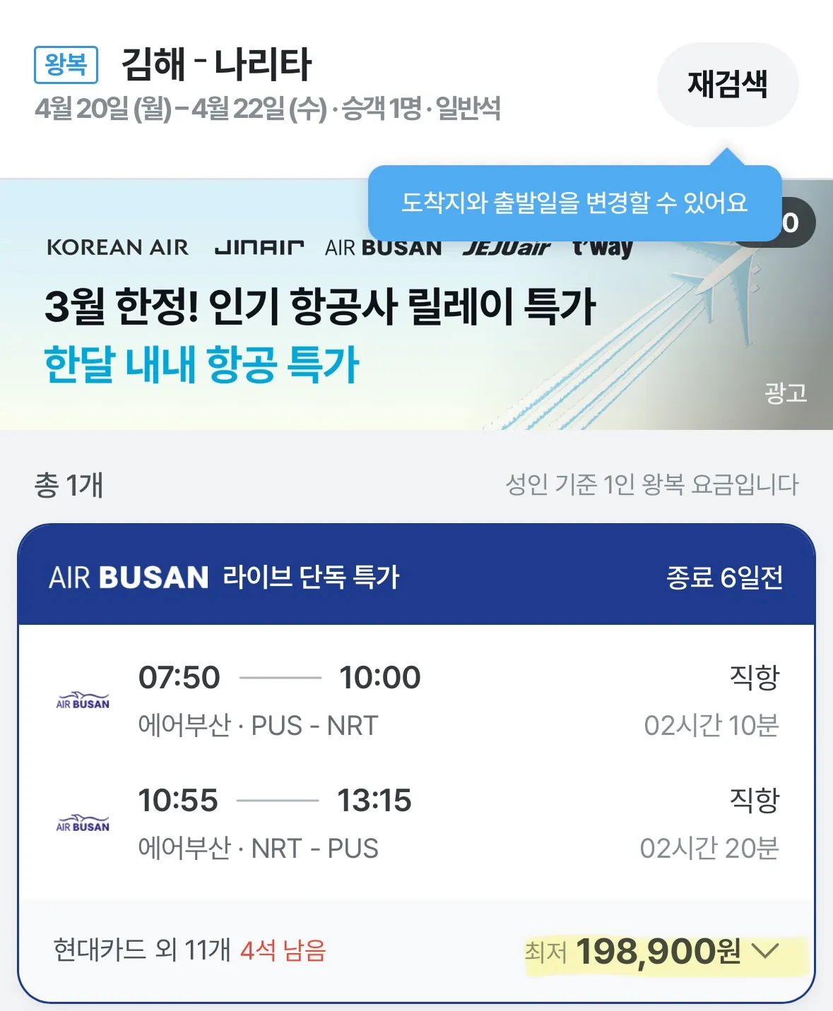 또한 평일에는 부산에서 도쿄까지 19만원대부터 시작하는 항공권도 있어요!