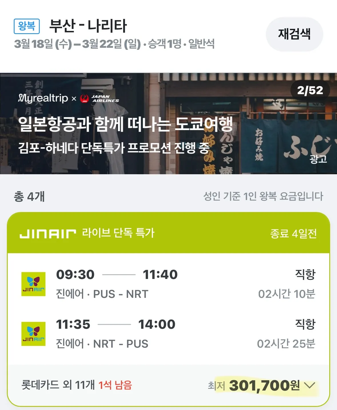 도쿄로는 301,700원으로 떠날 수 있어요.