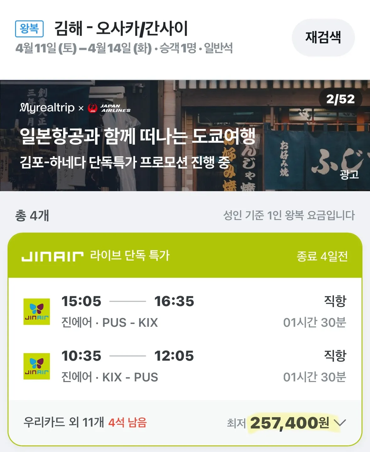오사카 여행은 257,400원에 가능합니다.