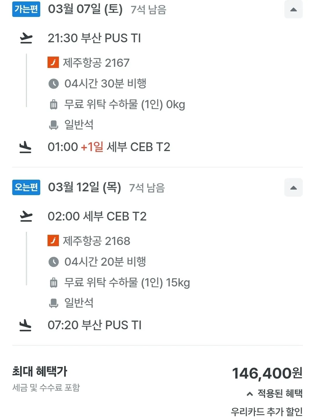 부산에서 세부까지 항공권 - 160,400원