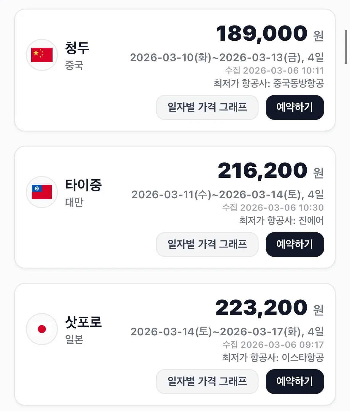 삿포로 4일 여행, 왕복 항공권 21.5만 원!
