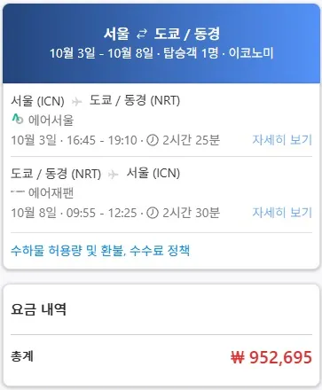 서울 ✈️ 오사카, 총 비용 약 20만 원