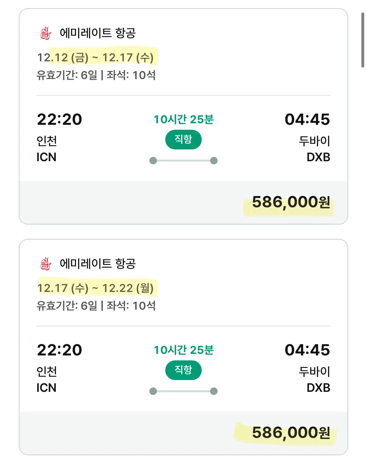 서울에서 두바이 여행 - 에미레이트 항공 특가, 약 58만 원