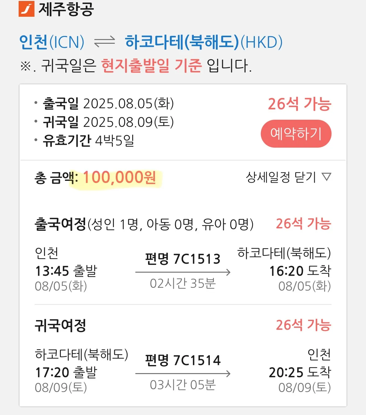 아쉽게도 26석이나 남아있었던 항공편이 벌써 매진됐네요. 😂