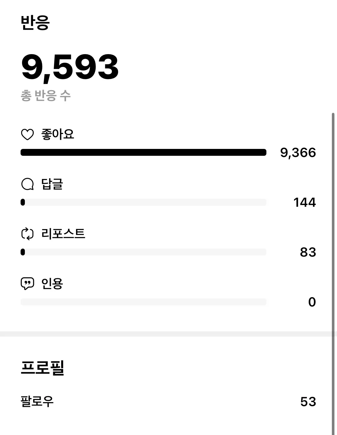 조회수가 300만을 넘은 글을 올렸는데, 새로 팔로우한 사람은 겨우 53명뿐이었어요.
